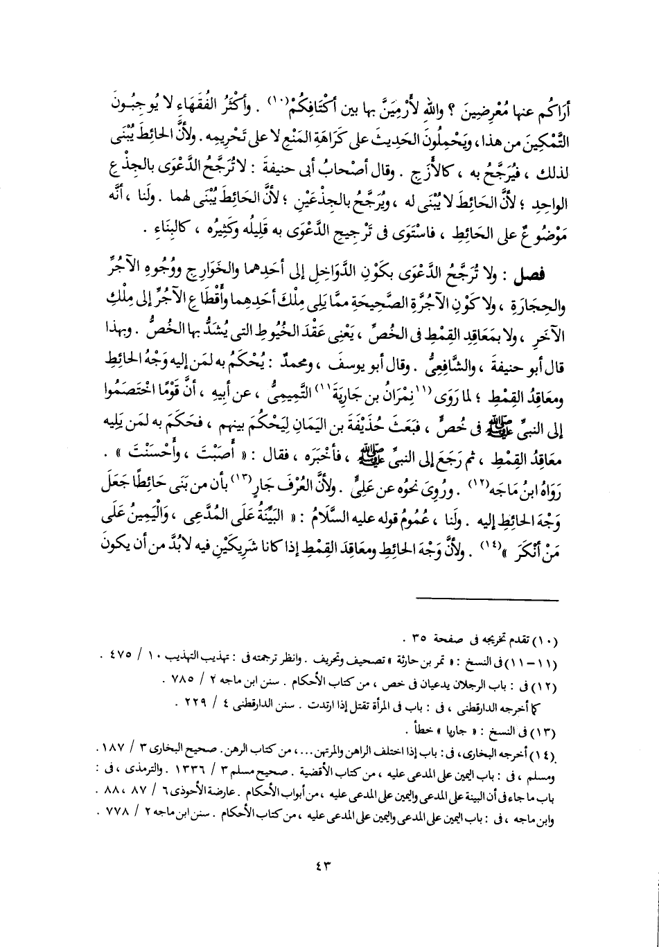 (١٢) فى: باب الرجلان يدعيان فى خص، من كتاب الأحكام. سنن ابن ماجه ٢/ ٧٨٥.