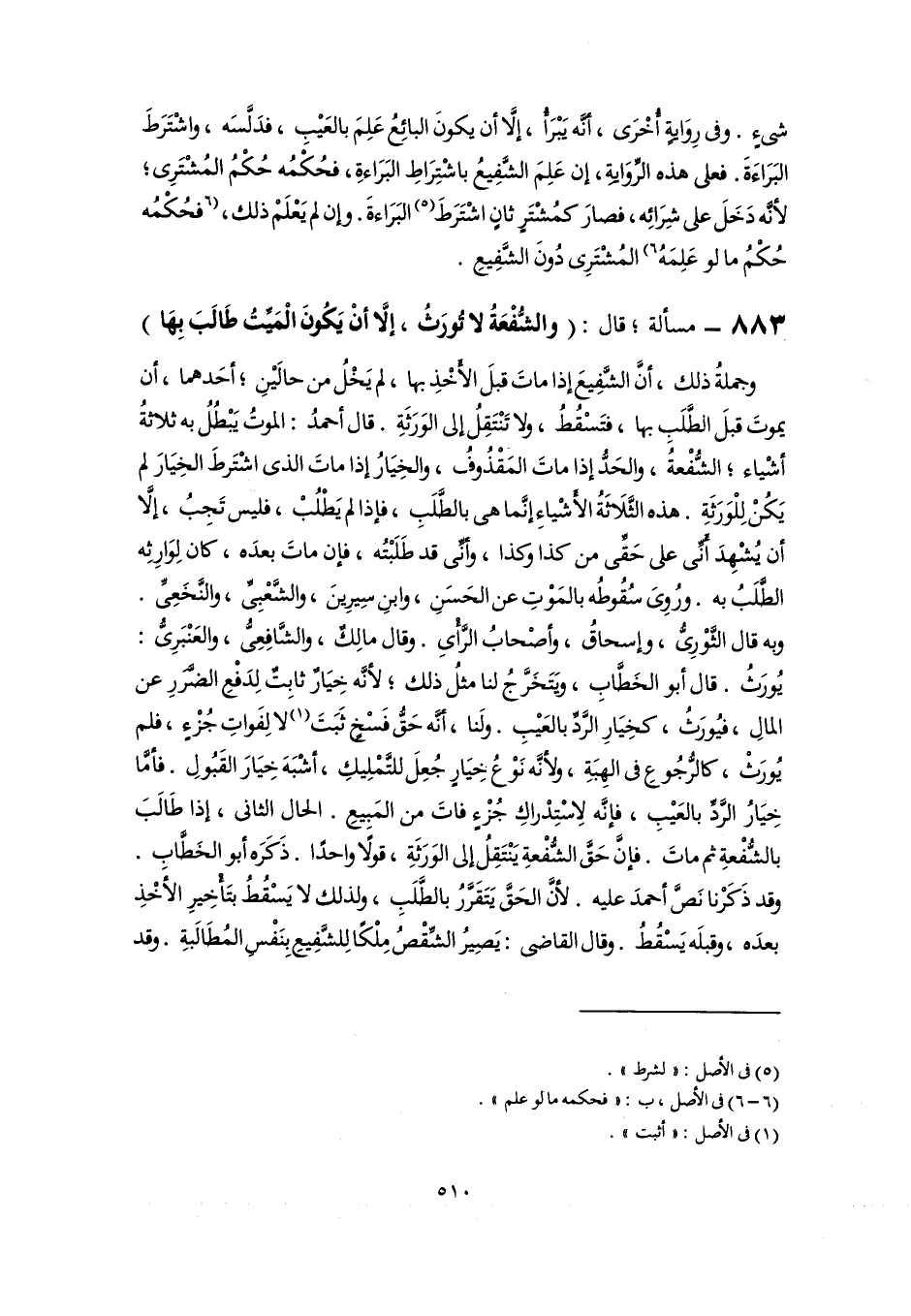 ٨٨٣ - مسألة؛ قال: (والشُّفْعَةُ لا تُورَثُ، إلَّا أنْ يَكُونَ الْمَيِّتُ طَالَبَ بِهَا)