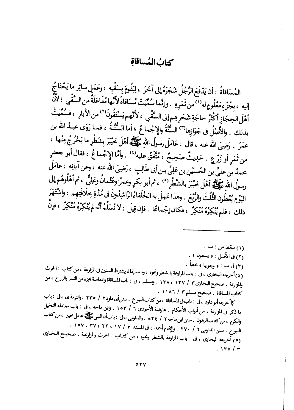 (٥) أخرجه البخاري، في: باب المزارعة بالشطر ونحوه، من كتاب: الحرث والمزارعة. صحيح البخاري ٣/ ١٣٧.