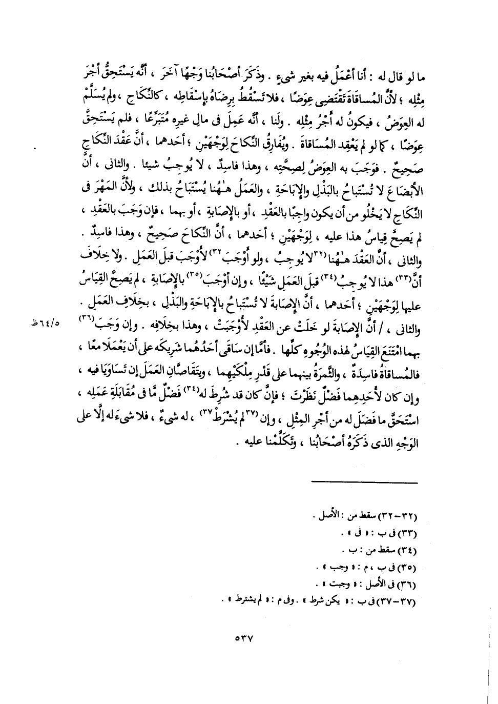 (٣٧) في ب: "يكن شرط". وفي م: "لم يشترط".