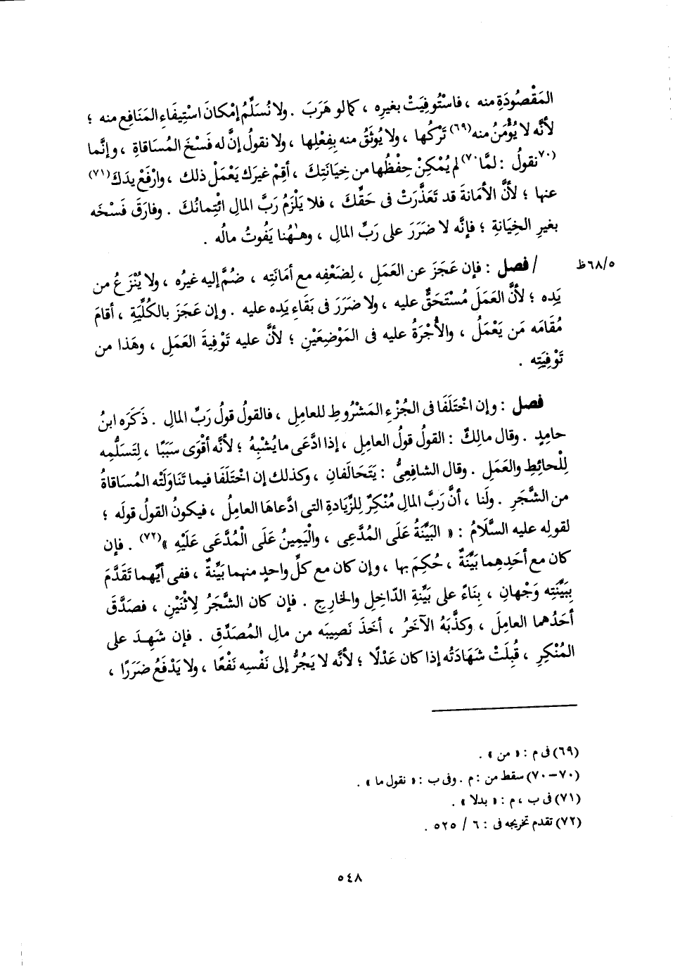 المَقْصُودَةِ منه، فاسْتُوفِيَتْ بغيرِه، كما لو هَرَبَ. ولا نُسَلِّمُ إمْكانَ اسْتِيفَاءِ المَنَافِع منه؛ لأنَّه لا يُؤْمَنُ منه (٦٩) تَرْكُها، ولا يُوثَقُ منه بِفِعْلِها، ولا نقولُ إنَّ له فَسْخَ المُسَاقاةِ، وإنَّما [نقولُ: لمَّا] (٧٠) لم يُمْكِنْ حِفْظُها من خِيَانَتِكَ، أقِمْ غيرَك يَعْمَلْ ذلك، وارْفَعْ يدَكَ (٧١) عنها؛ لأنَّ الأمَانةَ قد تَعَذَّرَتْ في حَقِّكَ، فلا يَلْزَمُ رَبَّ المالِ ائْتِمانُكَ. وفارَقَ فَسْخَه بغيرِ الخِيَانةِ؛ فإنَّه لا ضَرَرَ على رَبِّ المالِ، وههُنا يَفُوتُ مالُه.