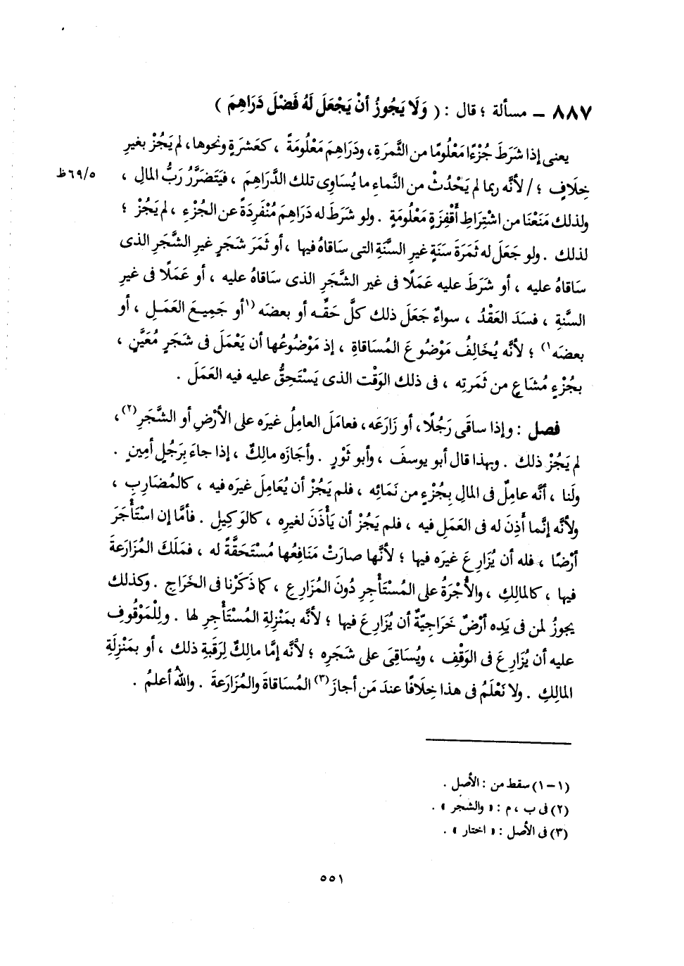 ٨٨٧ - مسألة؛ قال: (وَلَا يَجُوزُ أنْ يَجْعَلَ لَهُ فَضْلَ دَرَاهِمَ)