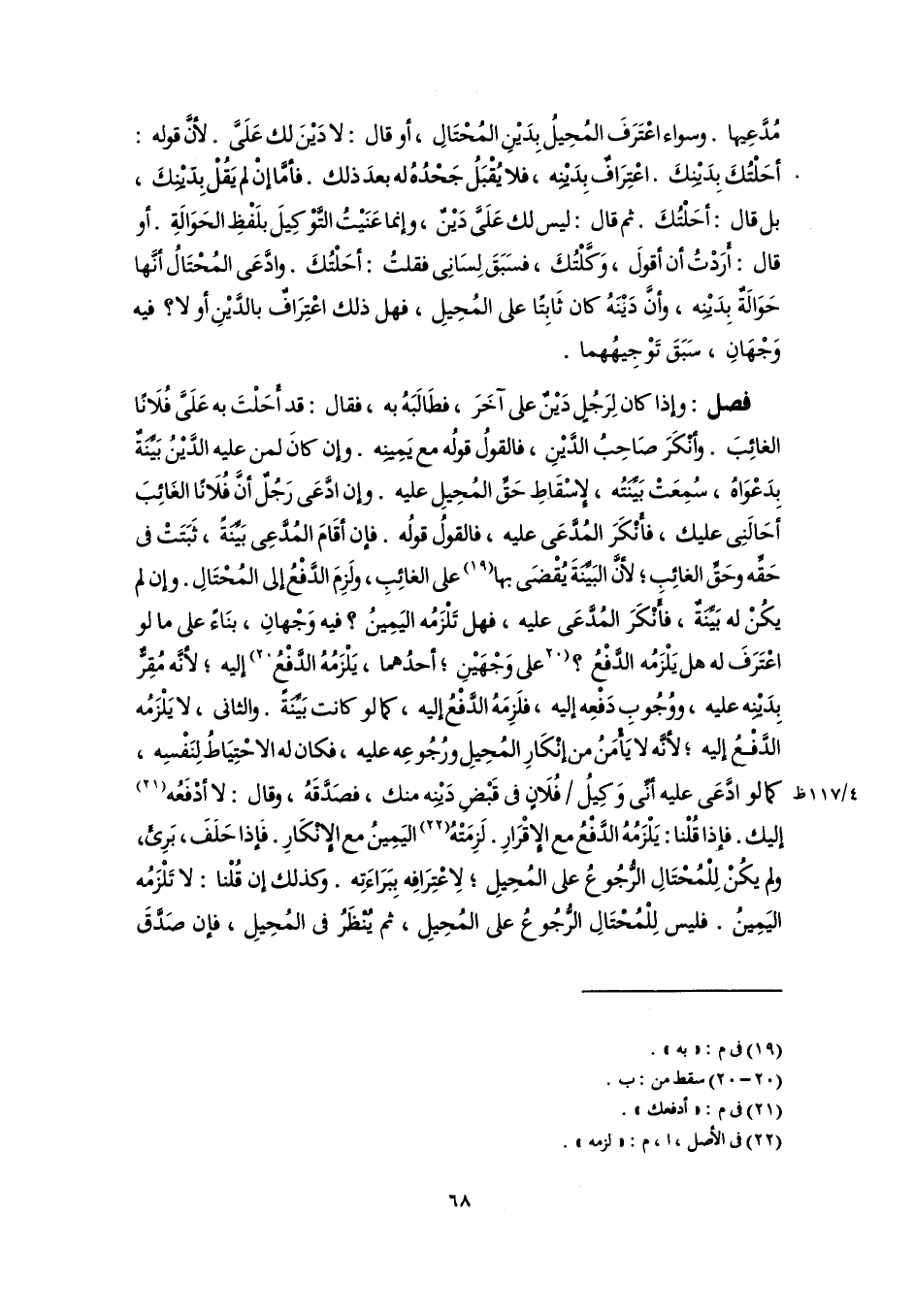 فصل: وإذا كان لِرَجُلٍ دَيْنٌ على آخَرَ، فطَالَبَهُ به، فقال: قد أَحَلْتَ به عَلَىَّ فُلَانًا الغائِبَ. وأنْكَرَ صَاحِبُ الدَّيْنِ، فالقولُ قولُه مع يَمِينِه. وإن كانَ لمن عليه الدَّيْنُ بَيِّنَةٌ بِدَعْوَاهُ، سُمِعَتْ بَيِّنَتُه، لإِسْقَاطِ حَقِّ المُحِيلِ عليه. وإن ادَّعَى رَجُلٌ أنَّ فُلَانًا الغَائِبَ أحَالَنِى عليك، فأَنْكَرَ المُدَّعَى عليه، فالقولُ قولُه. فإن أقَامَ المُدَّعِى بَيِّنَةً، ثَبَتَتْ في حَقِّه وحَقِّ الغائِبِ؛ لأنَّ البَيِّنَةَ يُقْضَى بها (١٩) على الغائِبِ، ولَزِمَ الدَّفْعُ إلى المُحْتَالِ. وإن لم يكُنْ له بَيِّنَةٌ، فأَنْكَرَ المُدَّعَى عليه، فهل تَلْزَمُه اليَمِينُ؟ فيه وَجْهانِ، بنَاءً على ما لو اعْتَرَفَ له هل يَلْزَمُه الدَّفْعُ؟ [على وَجْهَيْنِ؛ أحدُهما، يَلْزَمُهُ الدَّفْعُ] (٢٠) إليه؛ لأنَّه مُقِرٌّ بِدَيْنِه عليه، ووُجُوبِ دَفْعِه إليه، فلَزِمَهُ الدَّفْعُ إليه، كما لو كانت بَيِّنَةً. والثانى، لا يَلْزَمُه الدَّفْعُ إليه؛ لأنَّه لا يَأْمَنُ من إنْكَارِ المُحِيلِ ورُجُوعِه عليه، فكان له الاحْتِيَاطُ لِنَفْسِه، كما لو ادَّعَى عليه أنِّى وَكِيلُ فُلَانٍ في قَبْضِ دَيْنِه منك، فصَدَّقَهُ، وقال: لا أدْفَعُه (٢١) إليك. فإذا قُلْنا: يَلْزَمُهُ الدَّفْعُ مع الإِقْرَارِ. لَزِمَتْهُ (٢٢) اليَمِينُ مع الإِنْكَارِ. فَإذا حَلَفَ، بَرِئَ، ولم يكُنْ لِلْمُحْتَالِ الرُّجُوعُ على المُحِيلِ؛ لِاعْتِرَافِه بِبَرَاءَتِه. وكذلك إن قُلْنا: لا تَلْزَمُه اليَمِينُ. فليس لِلْمُحْتَالِ الرُّجُوعُ على المُحِيلِ، ثم يُنْظَرُ في المُحِيلِ، فإن صَدَّقَ