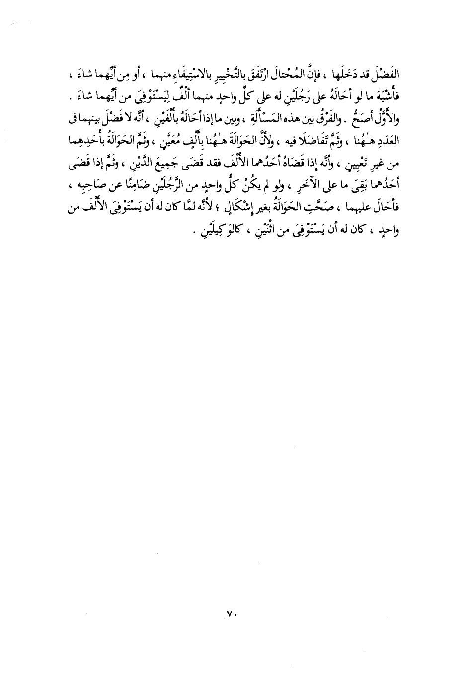 الفَضْلَ قد دَخَلَها، فإنَّ المُحْتالَ ارْتَفَقَ بالتَّخْيِيرِ بالاسْتِيفَاءِ منهما، أو مِن أيِّهما شاءَ، فأَشْبَهَ ما لو أحَالَهُ على رَجُلَيْنِ له على كلِّ واحدٍ منهما ألْفٌ لِيَسْتَوْفِىَ من أيِّهما شاءَ. والأَوَّلُ أصَحُّ. والفَرْقُ بين هذه المَسْأَلَةِ، وبين ما إذا أحَالَهُ بأَلْفَيْنِ، أنَّه لا فَضْلَ بينهما في العَدَدِ هاهُنا، وثَمَّ تَفَاضَلَا فيه، ولأنَّ الحَوَالَةَ هاهُنا بِأَلْفٍ مُعَيَّنٍ، وثَمَّ الحَوَالَةُ بأَحَدِهِما من غيرِ تَعْيِينٍ، وأنَّه إذا قَضَاهُ أحَدُهما الأَلْفَ فقد قَضَى جَمِيعَ الدَّيْنِ، وثَمَّ إذا قَضَى أحَدُهما بَقِىَ ما على الآخَرِ، ولو لم يكُنْ كلُّ واحدٍ من الرَّجُلَيْنِ ضَامِنًا عن صَاحِبِه، فأحَالَ عليهما، صَحَّتِ الحَوَالَةُ بغير إِشْكَالٍ؛ لأنَّه لمَّا كان له أن يَسْتَوْفِىَ الأَلْفَ من واحدٍ، كان له أن يَسْتَوْفِىَ من اثْنَيْنِ، كالوَكِيلَيْنِ.
