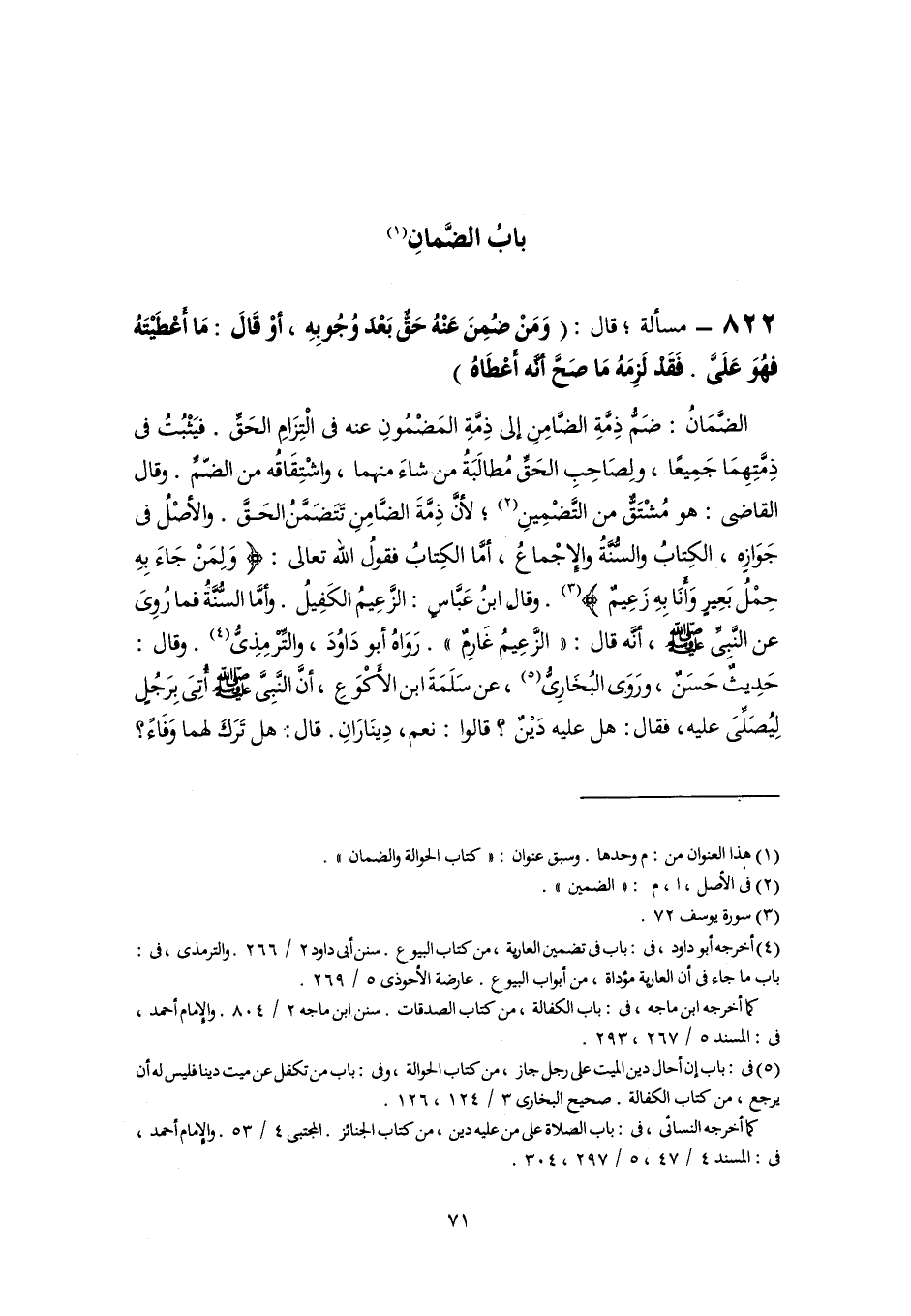 كما أخرجه ابن ماجه، في: باب الكفالة، من كتاب الصدقات. سنن ابن ماجه ٢/ ٨٠٤. والإمام أحمد، في: المسند ٥/ ٢٦٧، ٢٩٣.