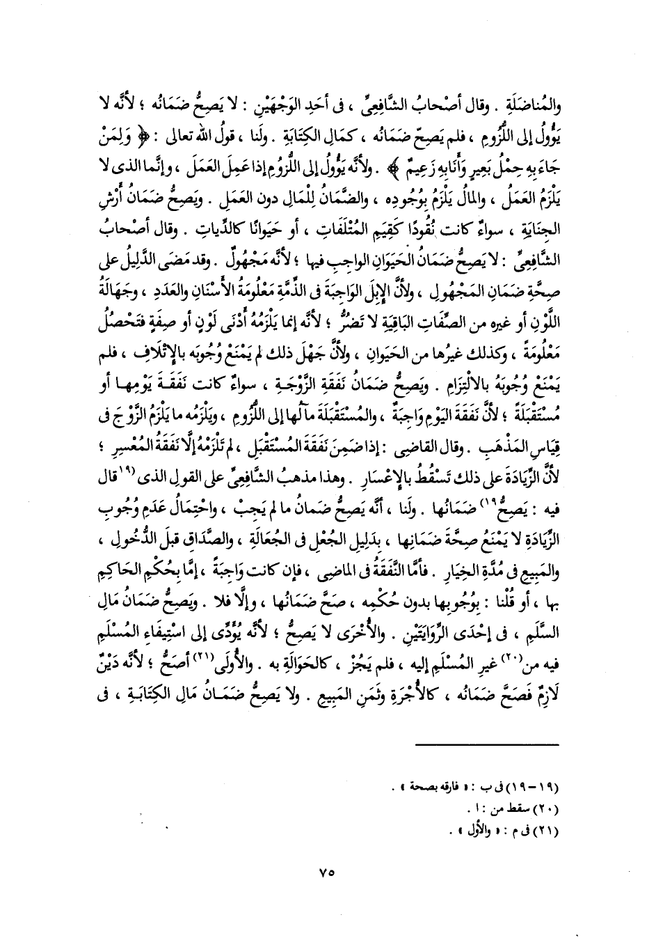 والمُناضَلَةِ. وقال أصْحابُ الشَّافِعِىِّ، في أحَدِ الوَجْهَيْنِ: لا يَصِحُّ ضَمَانُه؛ لأنَّه لا يَؤُولُ إلى اللُّزُومِ، فلم يَصِحّ ضَمَانُه، كمَالِ الكِتَابَةِ. ولَنا، قولُ اللَّه تعالى: {وَلِمَنْ جَاءَ بِهِ حِمْلُ بَعِيرٍ وَأَنَا بِهِ زَعِيمٌ}. ولأنَّه يَؤُولُ إلى اللُّزوُمِ إذا عَمِلَ العَمَلَ، وإنَّما الذي لا يَلْزَمُ العَمَلُ، والمالُ يَلْزَمُ بِوُجُودِه، والضَّمَانُ لِلْمَالِ دون العَمَلِ. ويَصِحُّ ضَمَانُ أَرْشِ الجِنَايَةِ، سواءٌ كانت نُقُودًا كَقِيَمِ المُتْلَفَاتِ، أو حَيَوانًا كالدِّياتِ. وقال أصْحابُ الشَّافِعِىِّ: لا يَصِحُّ ضَمَانُ الحَيَوَانِ الواجِبِ فيها؛ لأنَّه مَجْهُولٌ. وقد مَضَى الدَّلِيلُ على صِحَّةِ ضَمَانِ المَجْهُولِ، ولأنَّ الإِبِلَ الوَاجبَةَ في الذِّمَّةِ مَعْلُومَةُ الأَسْنَانِ والعَدَدِ، وجَهَالَةُ اللَّوْنِ أو غيره من الصِّفَاتِ البَاقِيَةِ لا تَضُرُّ؛ لأنَّه إنما يَلْزَمُهُ أَدْنَى لَوْنٍ أو صِفَةٍ فتَحْصُلُ مَعْلُومَةً، وكذلك غيرُها من الحَيَوانِ، ولأنَّ جَهْلَ ذلك لم يَمْنَعْ وُجُوبَه بالإِتْلَافِ، فلم يَمْنَعْ وُجُوبَهُ بالالْتِزَامِ. ويَصِحُّ ضَمَانُ نَفَقَةِ الزَّوْجَةِ، سواءٌ كانت نَفَقَةَ يَوْمِها أو مُسْتَقْبَلَةً؛ لأنَّ نَفَقَةَ اليَوْمِ وَاجِبَةٌ، والمُسْتَقْبَلَةَ مآلُها إلى اللُّزُومِ، ويَلْزَمُه ما يَلْزَمُ الزَّوْجَ في قِيَاسِ المَذْهَبِ. وقال القاضِى: إذا ضَمِنَ نَفَقَةَ المُسْتَقْبَلِ، لم تَلْزَمْهُ إلَّا نَفَقَةُ المُعْسِرِ؛ لأنَّ الزِّيَادَةَ على ذلك تَسْقُطُ بالإِعْسَارِ. وهذا مذهبُ الشَّافِعِىِّ على القولِ الذي [قال فيه: يَصِحُّ] (١٩) ضَمَانُها. ولَنا، أنَّه يَصِحُّ ضَمانُ ما لم يَجِبْ، واحْتِمَالُ عَدَمِ وُجُوبِ الزِّيَادَةِ لا يَمْنَعُ صِحَّةَ ضَمَانِها، بِدَلِيلِ الجُعْلِ في الجُعَالَةِ، والصَّدَاقِ قبلَ الدُّخُولِ، والمَبِيعِ في مُدَّةِ الخِيَارِ. فأمَّا النَّفَقَةُ في الماضِى، فإن كانت وَاجِبَةً، إمَّا بِحُكْمِ الحَاكِمِ بها، أو قُلْنا: بِوُجُوبِها بدون حُكْمِه، صَحَّ ضَمَانُها، وإلَّا فلا. ويَصِحُّ ضَمَانُ مَالِ السَّلَمِ، في إحْدَى الرِّوَايَتَيْنِ. والأُخْرَى لا يَصِحُّ؛ لأنَّه يُؤَدِّى إلى اسْتِيفَاءِ المُسْلَمِ فيه من (٢٠) غيرِ المُسْلَمِ إليه، فلم يَجُزْ، كالحَوَالَةِ به. والأُولَى (٢١) أصَحُّ؛ لأنَّه دَيْنٌ لَازِمٌ فَصَحَّ ضَمَانُه، كالأُجْرَةِ وثَمَنِ المَبِيعِ. ولا يَصِحُّ ضَمَانُ مَالِ الكِتَابَةِ، في