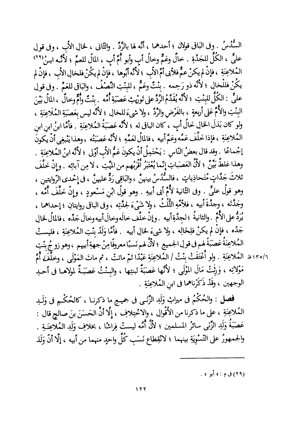 فصل: والحُكْمُ فى ميراثِ وَلَدِ الزِّنَى فى جميعِ ما ذكرنا، كالحُكْمِ فى وَلَدِ المُلاعِنَةِ، على ما ذكرنا من الأقْوالِ، والاخْتِلافِ، إلَّا أن الحَسَنَ بنَ صالحٍ قال: عَصَبَةُ وَلَدِ الزِّنَى سائرُ المسلمين؛ لأنَّ أُمَّه ليستْ فِراشًا، بخلافِ وَلَدِ المُلاعِنَةِ. والجمهورُ على التّسْوِيَةِ بينهما؛ لانْقِطاع نَسَبِ كُلِّ واحدٍ منهما من أبيه، إلَّا أنّ وَلَدَ
