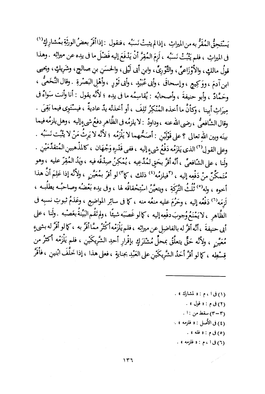يَسْتَحِقُّ المُقَرُّ به من الميراثِ، إذا لم يثبتْ نَسَبُه، فنقول: إذا أقَرّ بعضُ الورثةِ بمُشارِكٍ (١) فى الميراثِ، فلم يَثْبُتْ نَسَبُه، لَزِمَ المُقِرَّ أنْ يَدْفَعَ إليه فَضْلَ ما فى يده عن ميراثِه. وهذا قولُ مالكٍ، والأوْزَاعىِّ، والثَّوْرِىِّ، وابنِ أبى لَيْلى، والحسَنِ بنِ صالحٍ، وشَرِيكٍ، ويحيى بن آدمَ، ووَكِيعٍ، وإسحاقَ، وأبى عُبَيْدٍ، وأبى ثَوْرٍ، وأهْلِ البَصْرةِ. وقال النَّخَعىُّ، وحَمَّاد، وأبو حنيفةَ، وأصحابُه: يُقاسِمُه ما فى يدِه؛ لأنَّه يقول: أنا وأنت سَواءٌ فى مِيرَاثِ أبِينا، وكأنَّ ما أخذه المُنْكِرُ تَلِفَ، أو أخَذتْه يدٌ عاديةٌ، فيسْتَوِى فيما بَقِىَ. وقال الشَّافعىُّ، رضى اللَّه عنه، وداودُ: لا يلزمُه فى الظَّاهرِ دفعُ شىءٍ إليه، وهل يلزمُه فيما بينَه وبين اللَّهِ تعالى؟ على قَوْلَيْنِ: أصَحُّهما لا يَلْزَمُه؛ لأنَّه لا يَرِثُ مَنْ لا يثْبُت نَسَبُه. وعلى القولِ (٢) الذى يَلزَمُه دَفْعُ شىءٍ إليه، ففى قَدْرِه وَجْهَان، كالمذْهبينِ المُتقدِّمَيْنِ. ولَنا، على الشّافعىِّ، أنَّه أقرَّ بحَقٍّ لمُدَّعِيه، يُمْكِنُ صِدْقُه فيه، ويَدُ المُقِرّ عليه، وهو مُتَمكِّن منْ دَفْعِه إليه، [فيلزمُه (٣) ذلك، كما] (٤) لو أقرّ بمُعَيَّنٍ، ولأنَّه إذا عَلِمَ أَنَّ هذا أخوه، وله (٥) ثُلُثُ التَّركِةِ، ويتعيَّنُ اسْتِحْقاقُه لها، وفى يدِه بَعْضُه وصاحبُه يطلُبه، لَزِمَه (٦) دَفْعُه إليه، وحَرُمَ عليه منعُه منه، كما فى سائِر المواضِعِ، وعَدَمُ ثبوتِ نسبِه فى الظَّاهرِ، لا يَمْنَعُ وُجوبَ دفْعِه إليه، كما لو غَصَبَه شيئًا، ولم تَقُم البَيِّنةُ بغَصْبه. ولَنا، على أبى حنيفةَ، أنَّه أقرَّ له بالفاضِلِ عن ميراثِه، فلم يَلْزَمْه أكثَرُ ممَّا أقَرَّ به، كما لو أقَرَّ له بشىءٍ مُعَيَّنٍ، ولأنَّه حَقٌّ يتعلَّقُ بمحلٍّ مُشْتَرَكٍ بإقْرارِ أحدِ الشَّرِيكَيْنِ، فلم يَلْزَمْه أكثرُ من قِسْطِه، كما لو أقرَّ أحَدُ الشَّرِيكَيْنِ على العَبْدِ بجنايةٍ، فعلى هذا، إذا خَلَّفَ ابْنينِ، فأقَرَّ