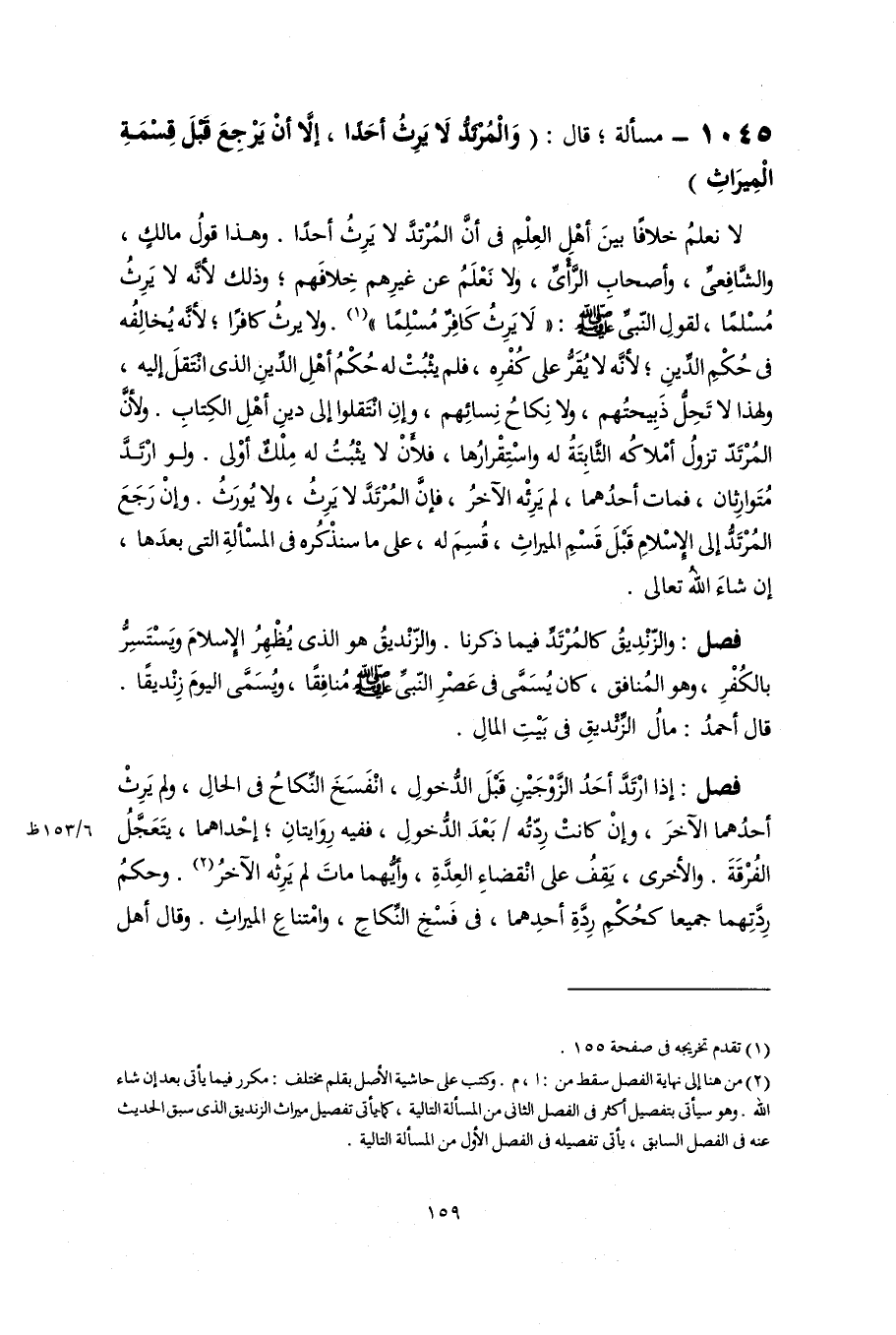 (٢) من هنا إلى نهاية الفصل سقط من: أ، م. وكتب على حاشية الأصل بقلم مختلف: مكرر فيما يأتى بعد إن شاء اللَّه. وهو يأتى بتفصيل أكثر فى الفصل الثانى من المسألة التالية، كما يأتى تفصيل ميراث الزنديق الذى سبق الحديث عنه فى الفصل السابق، يأتى تفصيله فى الفصل الأول من المسألة التالية.