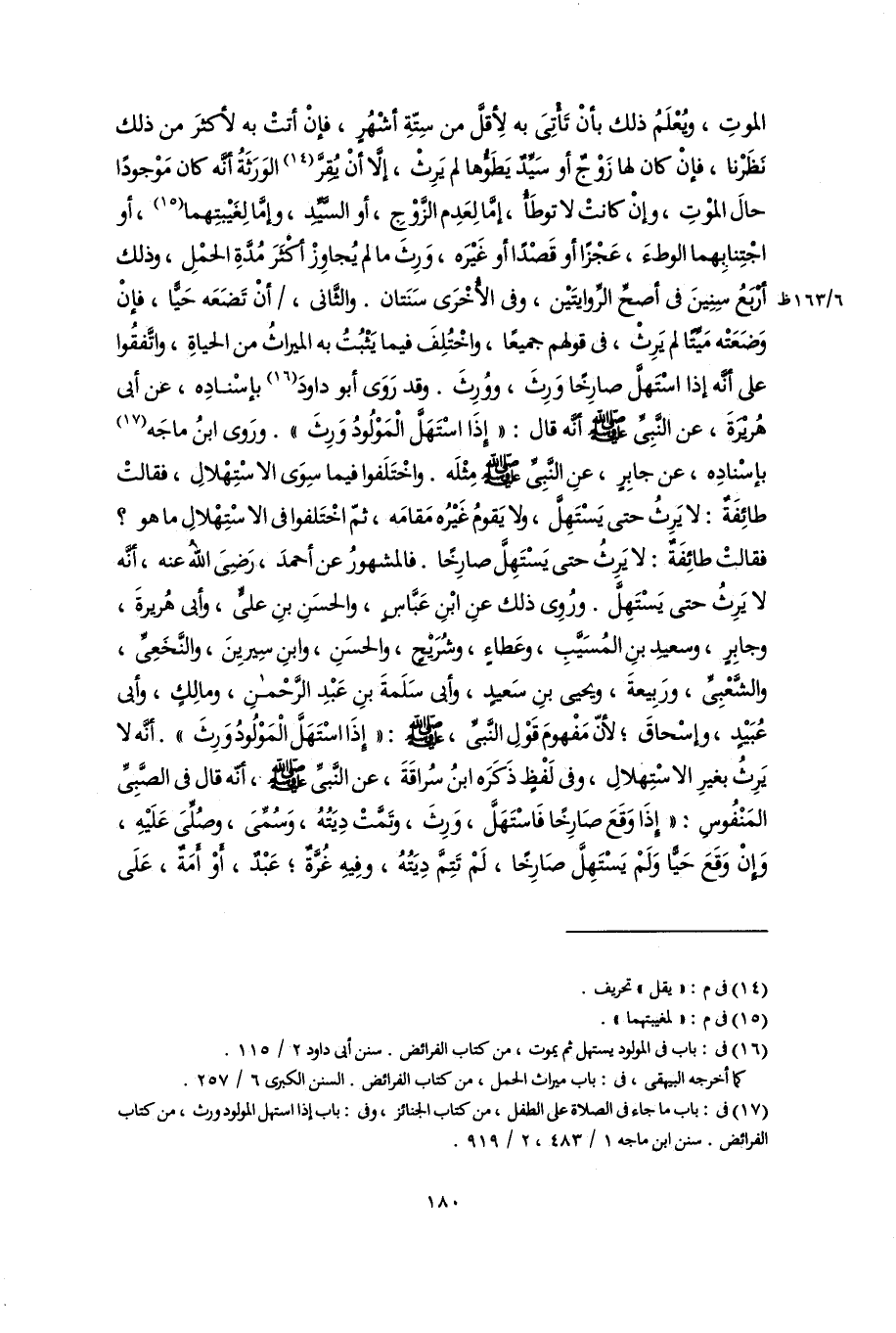 (١٦) فى: باب فى المولود يستهل ثم يموت، من كتاب الفرائض. سنن أبى داود ٢/ ١١٥.