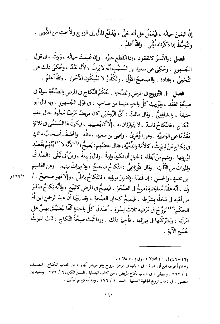 (٤٧) أخرجه ابن أبى شيبة، فى: باب فى الرجل يتزوج وهو مريض أيجوز، من كتاب النكاح. المصنف ٤/ ٣٦٢. والبيهقى، فى: باب نكاح المريض، من كتاب الوصايا. السنن الكبرى ٦/ ٢٧٦. وسعيد بن منصور، فى: باب تزوج الجارية الصغيرة. السنن ١/ ١٧٦. وفيه أنه تزوج امرأتين.