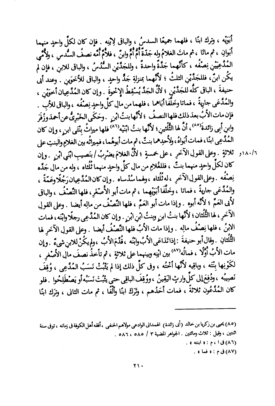 (٨٥) يحيى بن زكريا بن خالد (أبى زائدة) الهمدانى الوادعى مولاهم الحنفى، أفقه أهل الكوفة فى زمانه، توفى سنة اثنتين، وقيل: ثلاث ومائتين. الجواهر المضية ٣/ ٥٨٥، ٥٨٦.