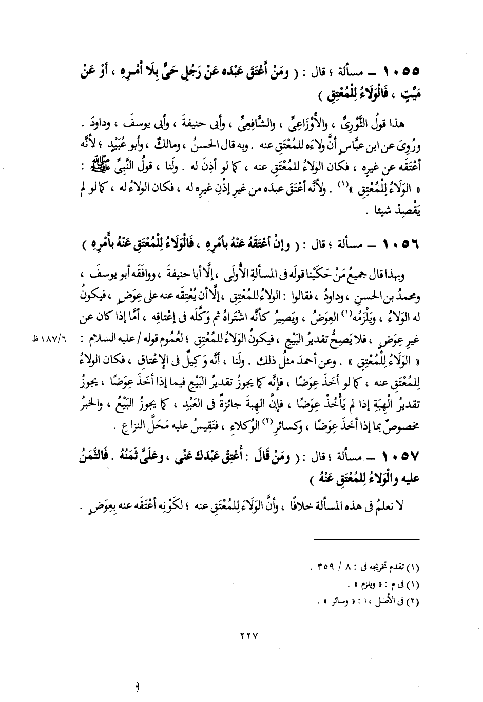 ١٠٥٥ - مسألة؛ قال: (ومَنْ أعْتَقَ عَبْدَه عَنْ رَجُلٍ حَىٍّ بِلَا أَمْرِهِ، أوْ عَنْ مَيِّتٍ، فَالْوَلَاءُ لِلْمُعتِقِ)