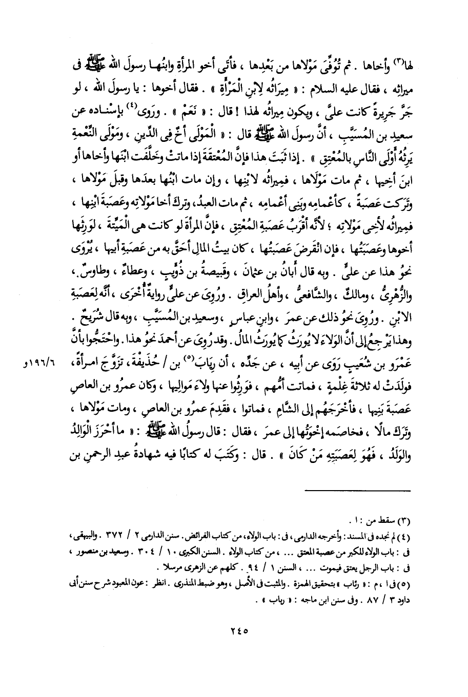 (٤) لم نجده فى المسند: وأخرجه الدارمى، فى: باب الولاء، من كتاب الفرائض. سنن الدارمى ٢/ ٣٧٢. والبيهقى، فى: باب الولاء للكبر من عصبة المعتق. . .، من كتاب الولاء. السنن الكبرى ١٠/ ٣٠٤. وسعيد بن منصور، فى: باب الرجل يعتق فيموت. . .، السنن ١/ ٩٤. كلهم عن الزهرى مرسلا.