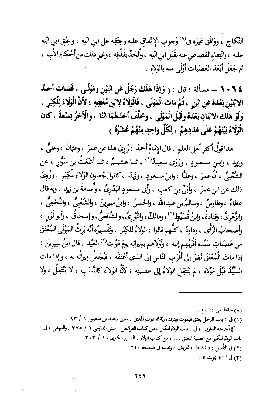 كما أخرجه الدارمى، فى: باب الولاء للكبر، من كتاب الفرائض. سنن الدارمى ٢/ ٣٧٥. والبيهقى، فى: باب الولاء للكبر من عصبة المعتق. . .، من كتاب الولاء. السنن الكبرى ١٠/ ٣٠٣.
