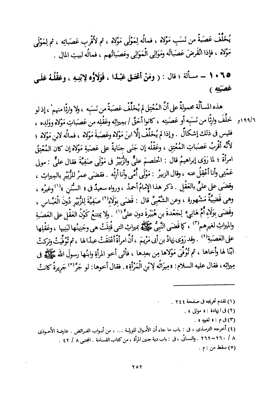 (٤) أخرجه الترمذى، فى: باب ما جاء أن الأموال للورثة. . .، من أبواب الفرائض. عارضة الأحوذى ٨/ ٢٦٠ - ٢٦٢. والنسائى، فى: باب دية جنين المرأة، من كتاب القسامة. المجتبى ٨/ ٤٢.