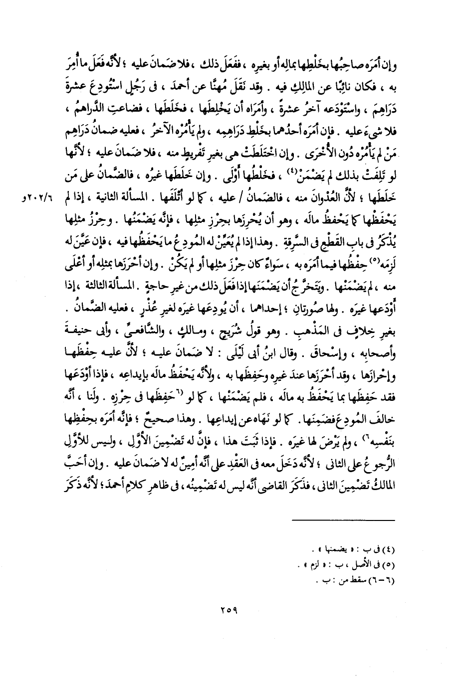 وإن أَمَرَه صاحِبُها بخَلْطِها بمالِه أو بغيرِه، ففَعَلَ ذلك، فلا ضَمانَ عليه؛ لأنَّه فَعَلَ ما أُمِرَ به، فكان نائِبًا عن المالِكِ فيه. وقد نَقَلَ مُهنَّا عن أحمدَ، فى رَجُلٍ اسْتُودِعَ عشرةَ دَرَاهِمَ، واسْتَوْدَعه آخرُ عشرةً، وأَمَرَاه أن يَخْلِطَها، فخَلَطَها، فضاعت الدَّراهمُ، فلا شىءَ عليه. فإن أَمَرَه أحدُهما بخَلْطِ دَرَاهِمِه، ولم يَأْمُرْه الآخرُ، فعليه ضمانُ دَرَاهِم مَنْ لم يَأْمُرْه دُون الأُخْرَى. وان اخْتَلَطَتْ هى بغيرِ تَفْريطٍ منه، فلا ضَمانَ عليه؛ لأنَّها لو تَلِفَتْ بذلك لم يَضْمَنْ (٤)، فخَلْطها أَوْلَى. وإن خَلَطَها غيرُه، فالضَّمانُ على مَن خَلَطَها؛ لأنَّ العُدْوانَ منه، فالضَمانُ عليه، كما لو أَتْلَفها. المسألة الثانية، إذا لم يَحْفَظْها كما يَحْفظُ مالَه، وهو أن يُحْرِزَها بحِرْزِ مثلِها، فإنَّه يَضْمَنُها. وحِرْزُ مثلِها يُذْكَرُ فى بابِ القَطْعِ فى السَّرِقةِ. وهذا إذا لم يُعَيِّنْ له المُودِعُ ما يَحْفَظُها فيه، فإن عَيَّنَ له لَزِمَه (٥) حِفْظُها فيما أَمَرَه به، سَواءٌ كان حِرْزَ مثلِها أو لم يَكُنْ. وإن أحْرَزَها بمثلِه أو أعْلَى منه، لم يَضْمَنْها. ويَتَخرَّجُ أن يَضْمَنَها إذا فَعَلَ ذلك من غيرِ حاجةٍ. المسألة الثالثة، إذا أوْدَعها غيرَه. ولها صُورتانِ؛ إحداهما، أن يُودِعَها غيرَه لغيرِ عُذْرٍ، فعليه الضَّمانُ. بغيرِ خِلافٍ فى المَذْهبِ. وهو قولُ شُرَيحٍ، ومالِكٍ، والشَّافعىِّ، وأبى حنيفةَ وأصحابِه، وإسْحاقَ. وقال ابنُ أبى لَيْلَى: لا ضَمانَ عليه؛ لأنَّ عليه حِفْظَها وإحْرازَها، وقد أحْرَزَها عندَ غيرِه وحَفِظَها به، ولأنَّه يَحْفَظُ مالَه بإيداعِه، فإذا أَوْدَعَها فقد حَفِظَها بما يَحْفَظُ به مالَه، فلم يَضْمَنْها، كما لو [حَفِظَها فى حِرْزِه. ولَنا، أنَّه خالفَ المُودِعَ فضَمِنَها. كما لو نَهَاه عن إيداعِها. وهذا صحيحٌ؛ فإنَّه أَمَرَه بحِفْظِها بنَفْسِه] (٦)، ولم يَرْضَ لها غيرَه. فإذا ثَبَتَ هذا، فإنَّ له تَضْمِينَ الأوَّلِ، وليس للأوَّلِ الرُّجوعُ على الثانى؛ لأنَّه دَخَلَ معه فى العَقْدِ على أنَّه أمِينٌ له لا ضَمانَ عليه. وإن أحَبَّ المالكُ تَضْمِينَ الثانى، فذَكَرَ القاضى أنَّهُ ليس له تَضْمِينُه، فى ظاهرِ كلامِ أحمدَ؛ لأنَّه ذَكَرَ
