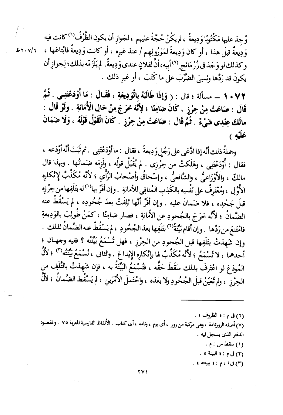 وُجِدَ عليها مَكْتُوبًا وَدِيعةً، لم يكُنْ حُجَّة عليهم، لجَوازِ أن يكون الظَّرْفُ (٦) كانت فيه وَدِيعةٌ قبلَ هذا، أو كان وَدِيعةً لمَوْرُوثِهِم عندَ غيرِه، أو كانت وَدِيعةً فابْتاعَها، وكذلك لو وَجَدَ فى زُرْمَانَجِ (٧) أبِيه، أنَّ لفلانٍ عندى وَدِيعة. لم يَلْزَمْه بذلك؛ لِجوازِ أن يكونَ قد رَدَّها وَنَسِىَ الضَّرْبَ على ما كَتَبَ، أو غيرِ ذلك.