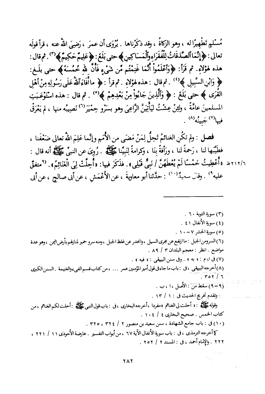 (٨) أخرجه البيهقى، فى: باب ما جاء فى قول أمير المؤمنين عمر. . .، من كتاب قسم الفىء والغنيمة. السنن الكبرى ٦/ ٣٥٢.