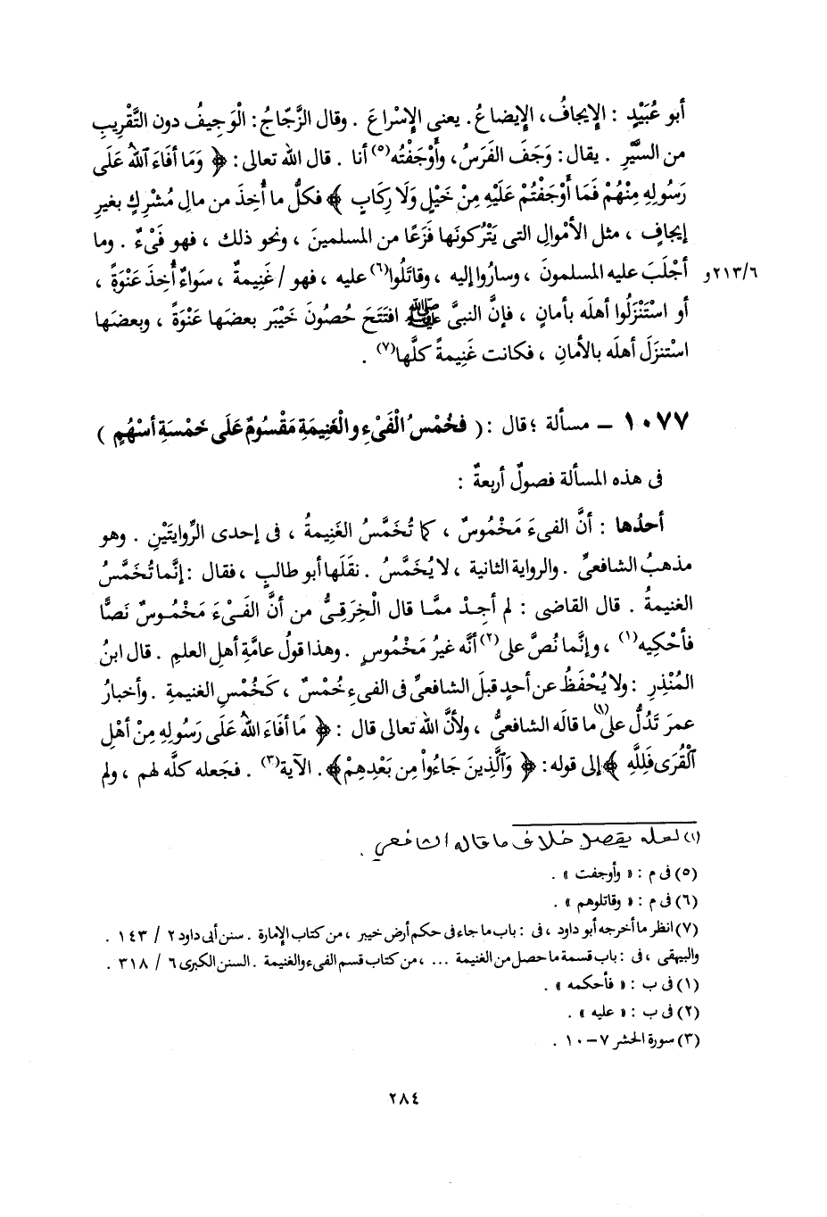 ١٠٧٧ - مسألة؛ قال: (فخُمْسُ الْفَىْءِ والْغَنِيمَةِ مَقْسُومٌ عَلَى خَمْسَةِ أسْهُمٍ)