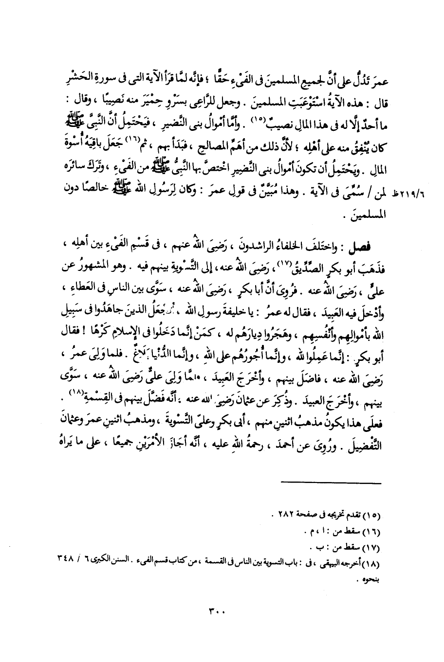 (١٨) أخرجه البيهقى، فى: باب التسوية بين الناس فى القسمة، من كتاب قسم الفىء. السنن الكبرى ٦/ ٣٤٨ بنحوه.