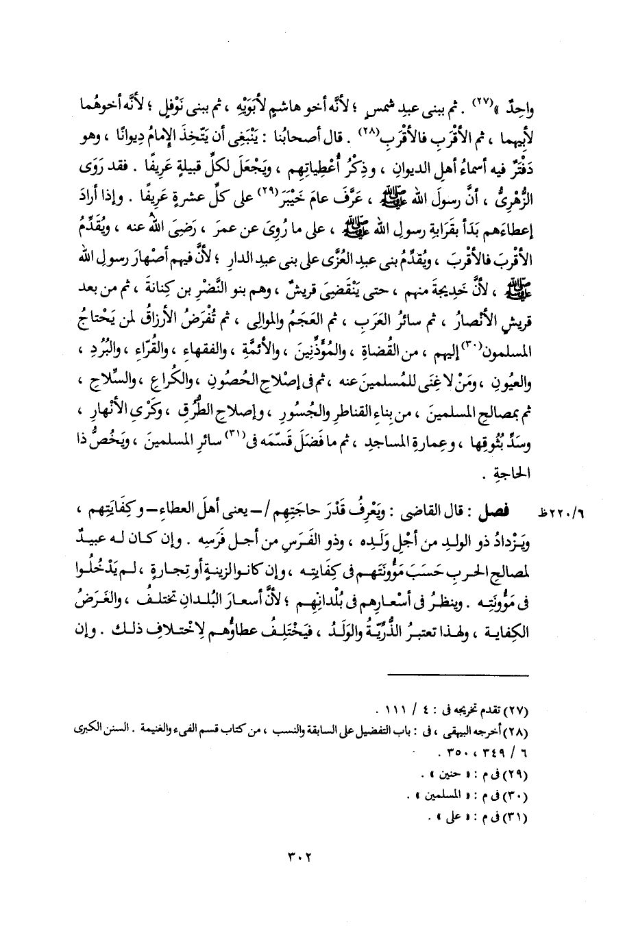 (٢٨) أخرجه البيهقى، فى: باب التفضيل على السابقة والنسب، من كتاب قسم الفىء والغنيمة. السنن الكبرى ٦/ ٣٤٩، ٣٥٠.
