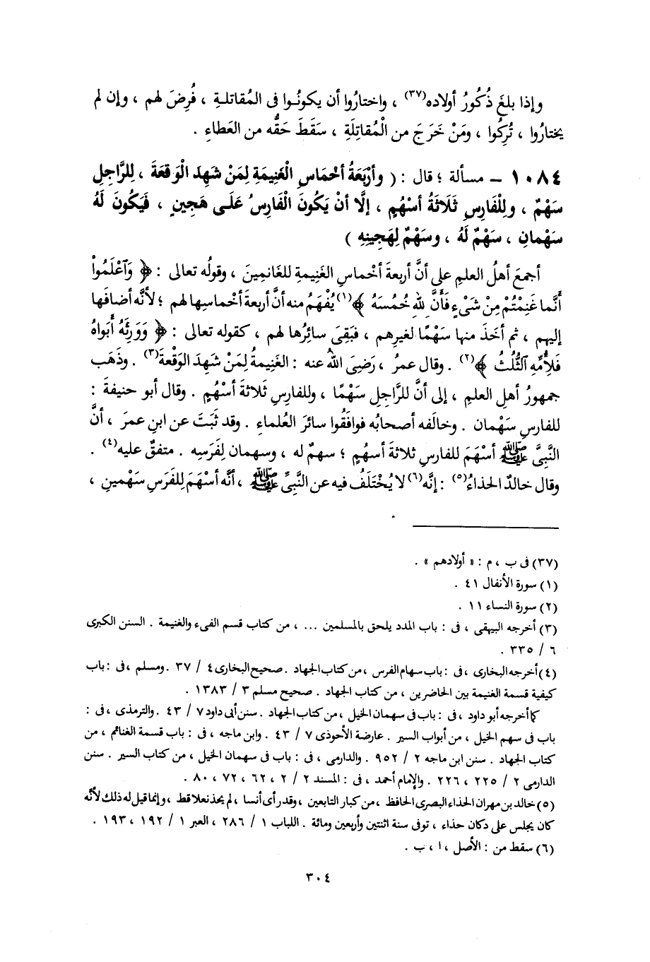 (٤) أخرجه البخارى، فى: باب سهام الفرس، من كتاب الجهاد. صحيح البخارى ٤/ ٣٧. ومسلم، فى: باب كيفية قسمة الغيمة بين الحاضرين، من كتاب الجهاد. صحيح مسلم ٣/ ١٣٨٣.