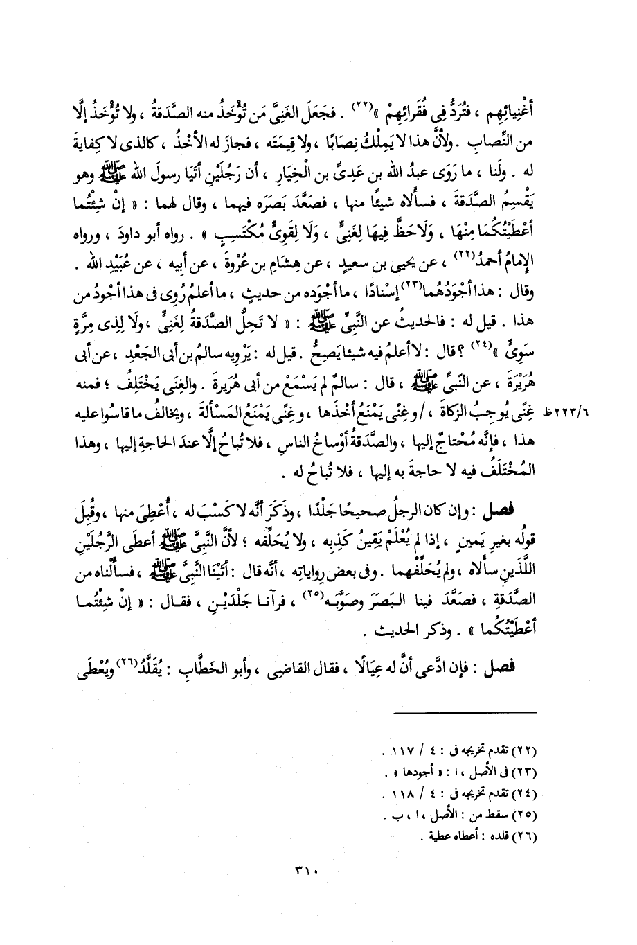 أغْنِيائِهِم، فتُرَدُّ فِى فُقَرائِهِمْ" (٢٢). فجَعَلَ الغَنِىَّ مَن تُؤْخَذُ منه الصَّدَقةُ، ولا تُؤْخَذُ إلَّا من النِّصابِ. ولأنَّ هذا لا يَمِلْكُ نِصَابًا، ولا قِيمَتَه، فجازَ له الأخْذُ، كالذى لا كِفايةَ له. ولَنا، ما رَوَى عبدُ اللَّه بن عَدِىِّ بن الْخِيَارِ، أن رَجُلَيْنِ أتَيَا رسولَ اللَّه -صلى اللَّه عليه وسلم- وهو يَقْسِمُ الصَّدَقةَ، فسأَلاه شيئًا منها، فصَعَّدَ بَصَرَه فيهما، وقال لهما: "إنْ شِئْتُما أعْطَيْتُكُمَا مِنْهَا، وَلَا حَظَّ فِيهَا لِغَنِىٍّ، وَلَا لِقَوِىٍّ مُكْتَسِبٍ". رواه أبو داودَ، ورواه الإِمامُ أحمدُ (٢٢)، عن يحيى بن سعيدٍ، عن هِشَامِ بن عُرْوةَ، عن أبِيه، عن عُبَيْدِ اللَّه. وقال: هذا أجْوَدُهُما (٢٣) إسْنادًا، ما أجْوَده من حديثٍ، ما أعلمُ رُوِى فى هذا أجْودُ من هذا. قيل له: فالحديثُ عن النَّبِىِّ -صلى اللَّه عليه وسلم-: "لا تَحِلُّ الصَّدَقةُ لِغَنِىٍّ، ولَا لِذِى مِرَّةٍ سَوِىٍّ" (٢٤)؟ قال: لا أعلمُ فيه شيئا يَصِحُّ. قيل له: يَرْوِيه سالمُ بن أبى الجَعْدِ، عن أبى هُرَيْرَةَ، عن النّبىِّ -صلى اللَّه عليه وسلم-، قال: سالمٌ لم يَسْمَعْ من أبى هُرَيرةَ. والغِنَى يَخْتَلِفُ؛ فمنه غِنًى يُوجِبُ الزكاةَ، وغِنًى يَمْنَعُ أخْذَها، وغِنًى يَمْنَعُ المَسْألةَ، ويخالفُ ما قاسُوا عليه هذا، فإنَّه مُحْتاجٌ إليها، والصَّدَقةُ أوْساخُ الناسِ، فلا تُباحُ إلَّا عندَ الحاجةِ إليها، وهذا المُخْتَلَفُ فيه لا حاجةَ به إليها، فلا تُباحُ له.