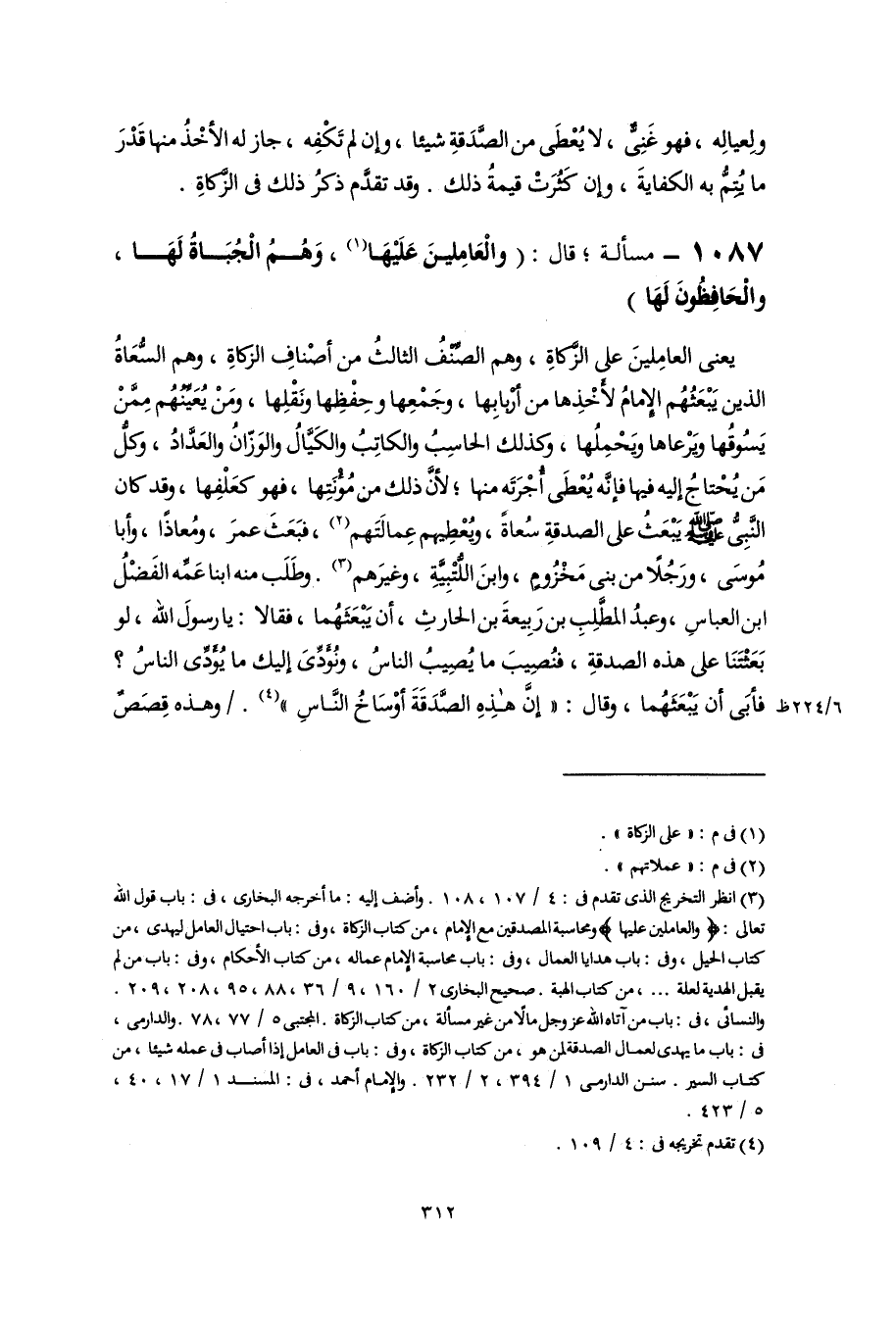 ١٠٨٧ - مسألة؛ قال: (والْعَامِلينَ عَلَيْهَا (١)، وَهُمُ الْجُبَاةُ لَهَا، والْحَافِظُونَ لَهَا)