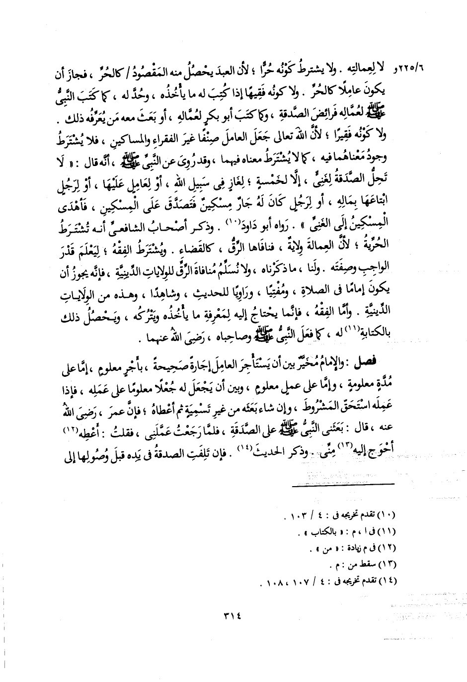 لا لِعِمالتِه. ولا يشترطُ كَوْنُه حُرًّا؛ لأنَّ العبدَ يحْصُلُ منه المَقْصُودُ كالحُرِّ، فجازَ أن يكونَ عامِلًا كالحُرِّ. ولا كونُه فَقِيهًا إذا كُتِبَ له ما يأْخُذُه، وحُدَّ له، كما كَتَبَ النَّبِىُّ -صلى اللَّه عليه وسلم- لعُمَّالِه فَرائِضَ الصَّدقةِ، وكما كتَبَ أبو بكرٍ لعُمَّالهِ، أو بَعَثَ معه مَن يُعَرِّفُه ذلك. ولا كَوْنُه فَقِيرًا؛ لأنَّ اللَّه تعالى جَعَلَ العاملَ صِنْفًا غيرَ الفقراءِ والمساكينِ، فلا يُشْتَرَطُ وجودُ مَعْناهُما فيه، كما لا يُشْتَرَطُ معناه فيهما، وقد رُوِىَ عن النَّبِىِّ -صلى اللَّه عليه وسلم-، أنَّه قال: "لَا تَحِلُّ الصَّدَقةُ لِغنِىٍّ، إلَّا لخَمْسةٍ؛ لِغَازٍ فِى سَبِيلِ اللَّهِ، أوْ لِعَامِلٍ عَلَيْهَا، أوْ لِرَجُلٍ ابْتاعَهَا بِمَالِهِ، أو لِرَجُلٍ كَانَ لَهُ جَارٌ مِسْكِينٌ فَتَصَدَّقَ عَلَى الْمِسْكِينِ، فَأهْدَى الْمِسْكِينُ إلَى الغَنِىِّ". رَواه أبو دَاودَ (١٠). وذكر أصْحابُ الشافعىِّ أنَّه تُشْتَرَطُ الحُرِّيةُ؛ لأنَّ العِمالةَ وِلايةٌ، فنافَاها الرِّقُّ، كالقَضاءِ. ويُشْتَرَطُ الفِقْهُ؛ لِيَعْلَمَ قَدْرَ الواجِبِ وصِفَتَه. ولَنا، ما ذكَرْناه، ولا نُسَلِّمُ مُنافاةَ الرِّقِّ للوِلاياتِ الدِّيِنِيَّةِ، فإنَّه يجوزُ أن يكونَ إمامًا فى الصلاةِ، ومُفْتِيًا، ورَاوِيًا للحديثِ، وشاهِدًا، وهذه من الوِلَاياتِ الدِّينيَّةِ. وأمَّا الفِقْهُ، فإنَّما يحْتاجُ إليه لِمَعْرِفةِ ما يأْخُذُه ويَتْرُكُه، ويَحْصُلُ ذلك بالكتابةِ (١١) له، كما فعَلَ النَّبِىُّ -صلى اللَّه عليه وسلم- وصاحِباه، رَضِىَ اللَّهُ عنهما.