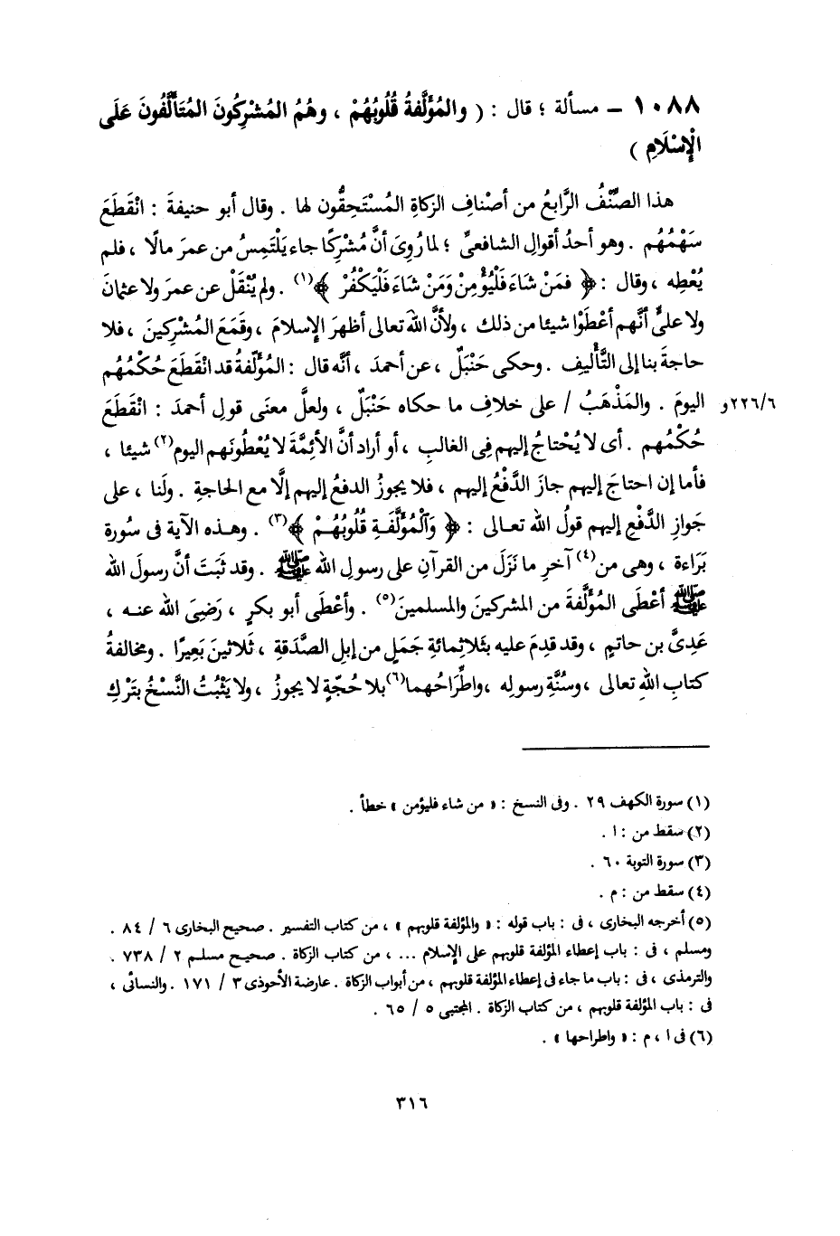 ١٠٨٨ - مسألة؛ قال: (والمُؤَلَّفةُ قُلُوبُهُمْ، وهُمُ المُشْرِكُونَ المُتَأَلَّفُونَ عَلَى الْإِسْلَامِ)