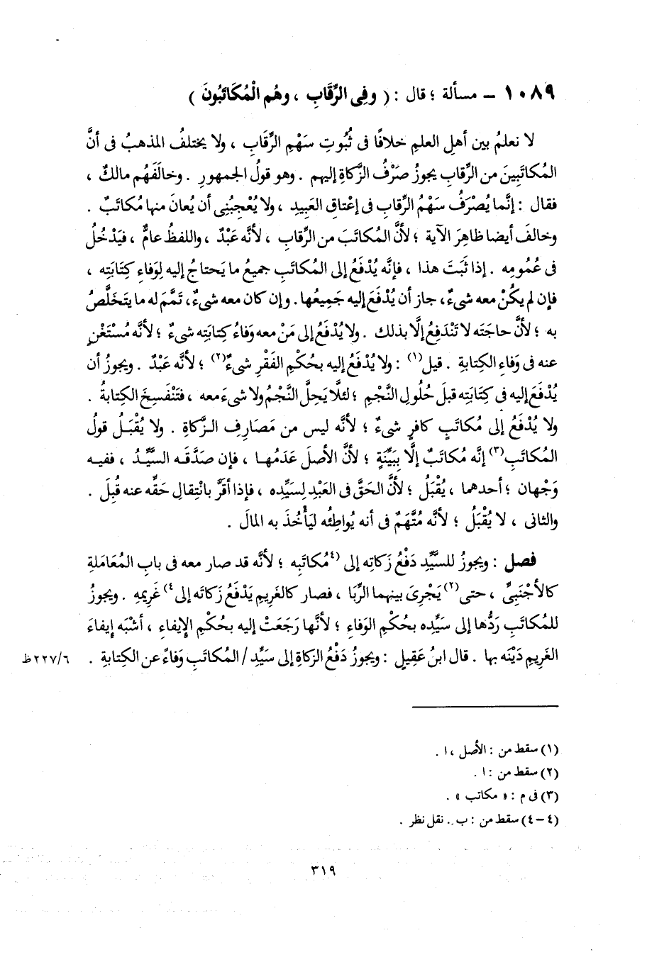 ١٠٨٩ - مسألة؛ قال: (وفِى الرِّقَابِ، وهُم الْمُكَاتَبُونَ)