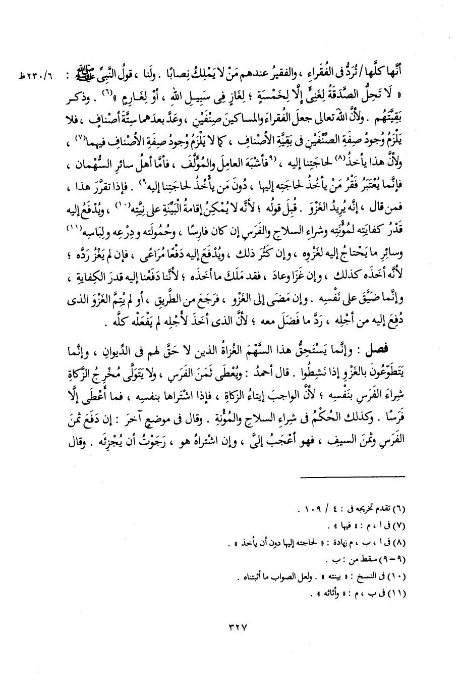 فصل: وإنَّما يَسْتَحِقُّ هذا السَّهْمَ الغُزاةُ الذين لا حَقَّ لهم فى الدِّيوانِ، وإنَّما يَتَطَوّعُونَ بالغَزْوِ إذا نَشِطُوا. قال أحمدُ: ويُعْطى ثَمَنَ الفَرَسِ، ولا يَتَوَلَّى مُخْرِجُ الزَّكاةِ شِراءَ الفَرَسِ بنَفْسِه؛ لأنَّ الواجبَ إيتاءُ الزكاةِ، فإذا اشْتَراها بنفسِه، فما أَعْطَى إلَّا فَرَسًا. وكذلك الحُكْمُ فى شِراءِ السلاحِ والمُؤْنةِ، وقال فى موضعٍ آخرَ: إن دَفَعَ ثمنَ الفَرَسِ وثمنَ السيفِ، فهو أعْجَبُ إلىَّ، وإن اشْتراهُ هو، رَجَوْتُ أن يُجْزِئَه. وقال