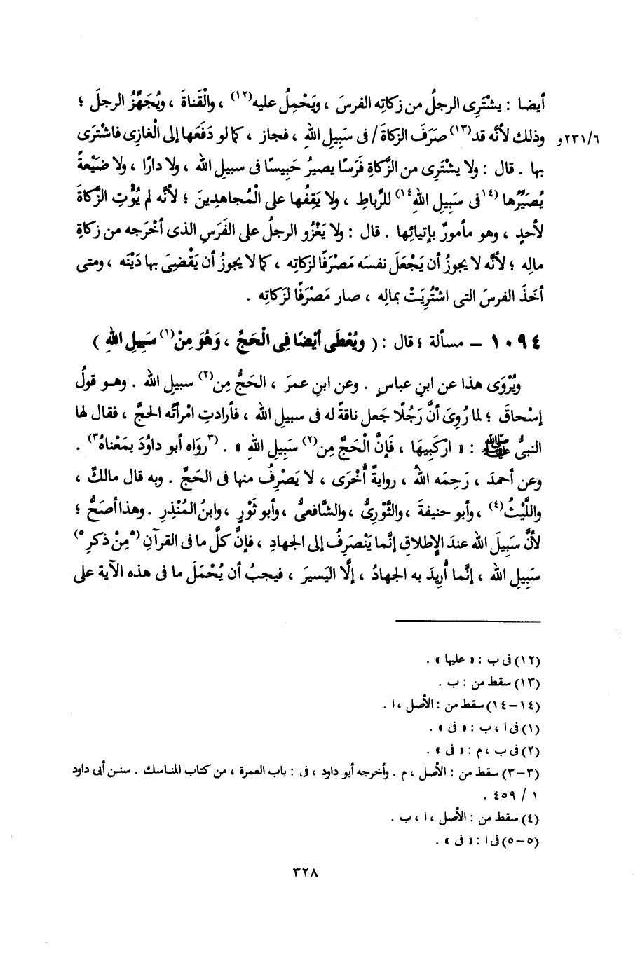 ويُرْوَى هذا عن ابنِ عباسٍ. وعن ابنِ عمرَ، الحَجُّ مِن (٢) سبيلِ اللَّه. وهو قولُ إسْحاقَ؛ لما رُوِىَ أَنَّ رَجُلًا جَعل ناقةً له فى سبيلِ اللَّه، فأرادتِ امْرأتُه الحجِّ، فقال لها النبىُّ -صلى اللَّه عليه وسلم-: "ارْكَبِيهَا، فَإنَّ الْحَجَّ مِن (٢) سَبِيلِ اللَّه". [روَاه أبو داوُدَ بمَعْناهُ] (٣). وعن أحمدَ، رَحِمَه اللَّه، روايةٌ أُخْرَى، لا يَصْرِفُ منها فى الحَجِّ. وبه قال مالكٌ، واللَّيْثُ (٤)، وأبو حنيفةَ، والثَّوْرِىُّ، والشَّافعىُّ، وأبو ثَوْرٍ، وابنُ المُنْذِرِ. وهذا أصَحُّ؛ لأنَّ سَبِيلَ اللَّه عندَ الإِطلاقِ إنَّما يَنْصَرِفُ إلى الجهادِ، فإنَّ كلَّ ما فى القرآنِ [مِنْ ذكرِ] (٥) سَبِيلِ اللَّه، إنَّما أُرِيدَ به الجهادُ، إلَّا اليَسيرَ، فيجبُ أن يُحْمَلَ ما فى هذه الآية على