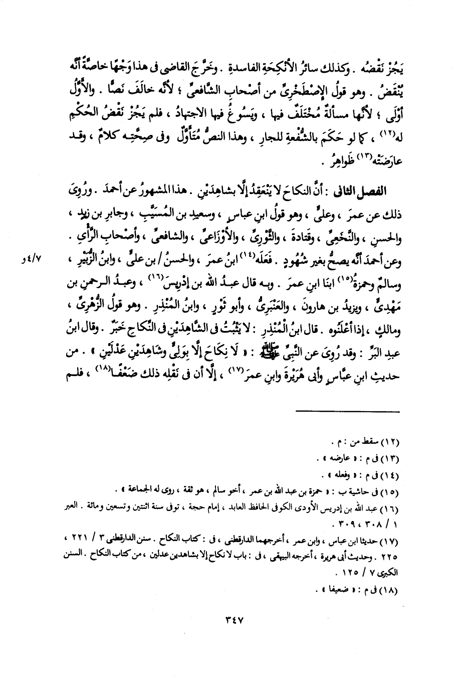 (١٧) حديثا ابن عباس، وابن عمر، أخرجهما الدارقطنى، فى: كتاب النكاح. سنن الدارقطنى ٣/ ٢٢١، ٢٢٥. وحديث أبى هريرة، أخرجه البيهقى، فى: باب لا نكاح إلا بشاهدين عدلين، من كتاب النكاح. السنن الكبرى ٧/ ١٢٥.