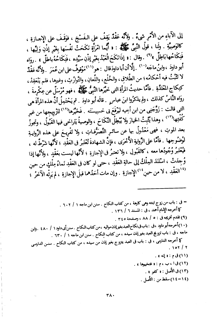 (١٠) أخرجه أبو داود، فى: باب فى نكاح العبد بغير إذن مواليه، من كتاب النكاح. سنن أبى داود ١/ ٤٨٠. وابن ماجه، فى: باب تزويج العبد بغير إذن سيده، من كتاب النكاح. سنن ابن ماجه ١/ ٦٣٠.
