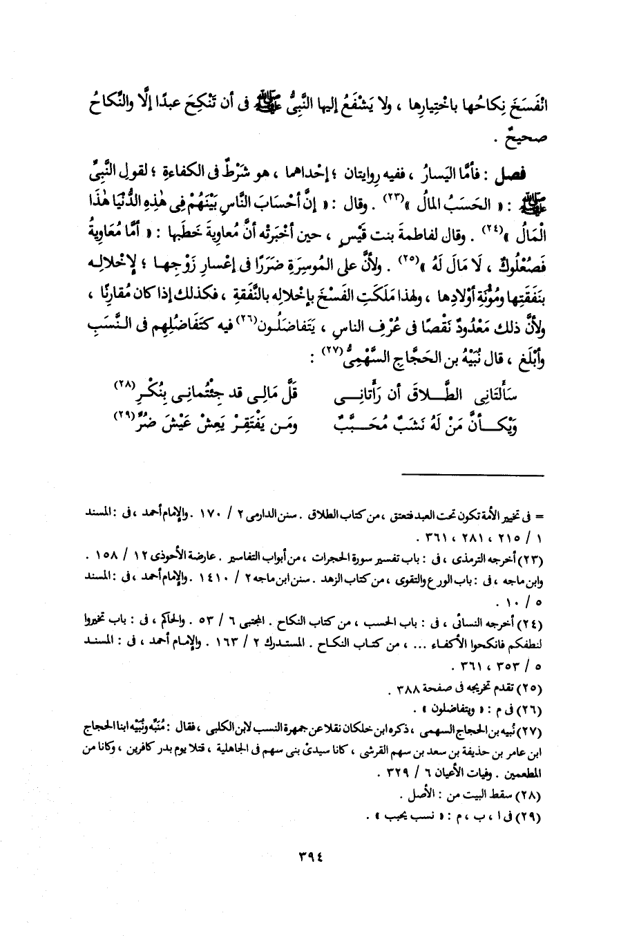 (٢٤) أخرجه النسائى، فى: باب الحسب، من كتاب النكاح. المجتبى ٦/ ٥٣. والحاكم، فى: باب تخيروا لنطفكم فانكحوا الأكفاء. . .، من كتاب النكاح. المستدرك ٢/ ١٦٣. والإمام أحمد، فى: المسند ٥/ ٣٥٣، ٣٦١.