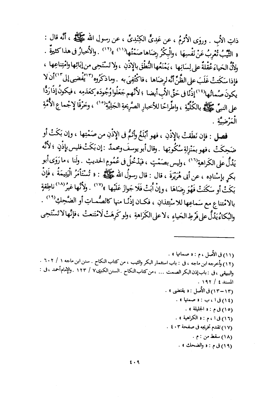 (١٢) وأخرجه ابن ماجه، فى: باب استئمار البكر والثيب، من كتاب النكاح. سنن ابن ماجه ١/ ٦٠٢. والبيهقى، فى: باب إذن البكر الصمت. . .، من كتاب النكاح. السنن الكبرى ٧/ ١٢٣. والإمام أحمد، فى: المسند ٤/ ١٩٢.