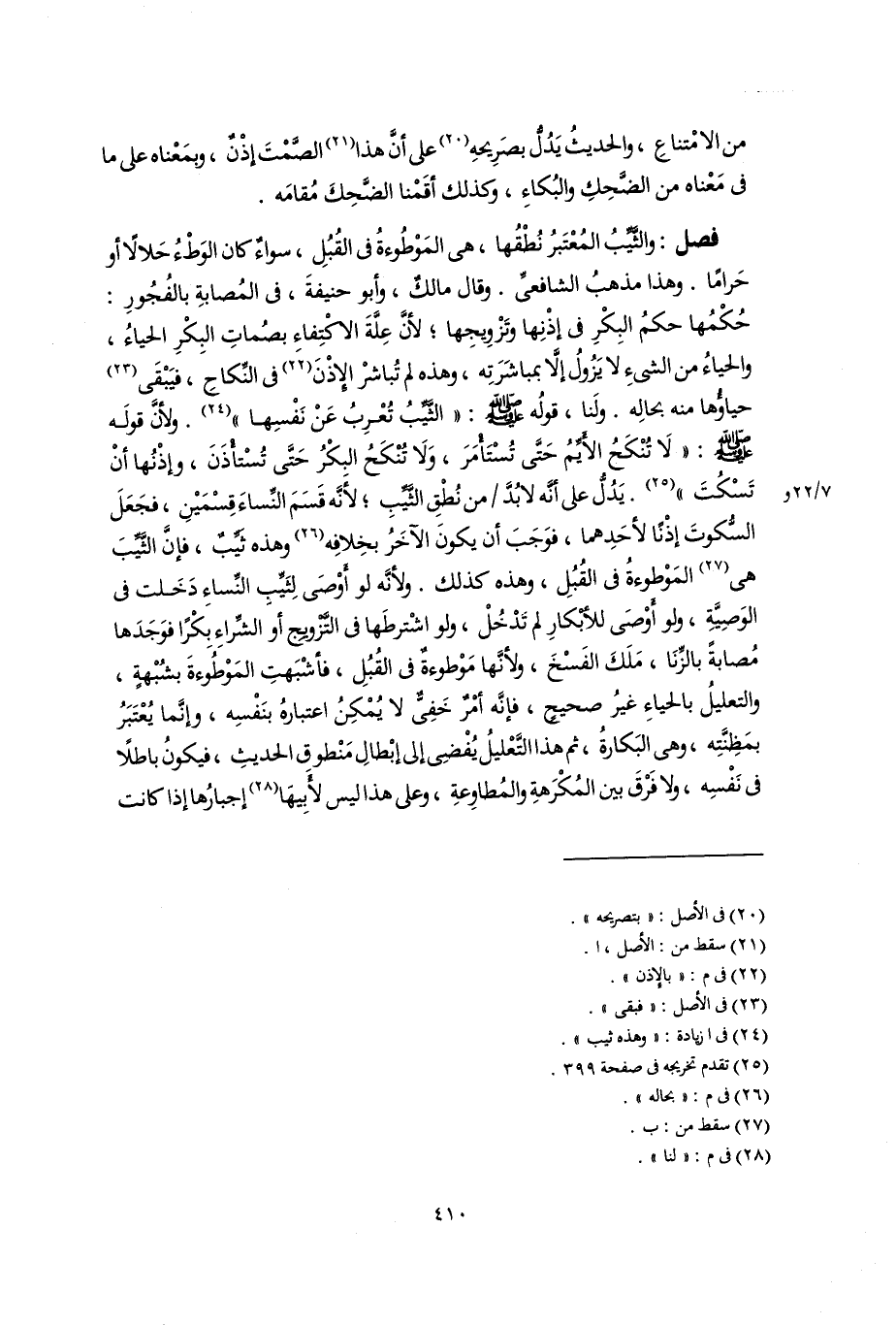 من الامْتناعِ، والحديثُ يَدُلُّ بصَرِيحهِ (٢٠) على أَنَّ هذا (٢١) الصَّمْتَ إذْنٌ، وبِمَعْناه على ما فى مَعْناه من الضَّحِكِ والبُكاءِ، وكذلك أقَمْنا الضَّحِكَ مُقامَه.