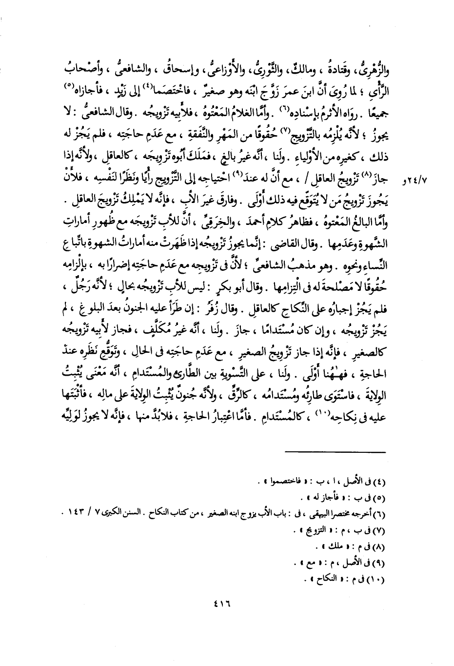 (٦) أخرجه مختصرا البيهقى، فى: باب الأب يزوج ابنه الصغير، من كتاب النكاح. السنن الكبرى ٧/ ١٤٣.