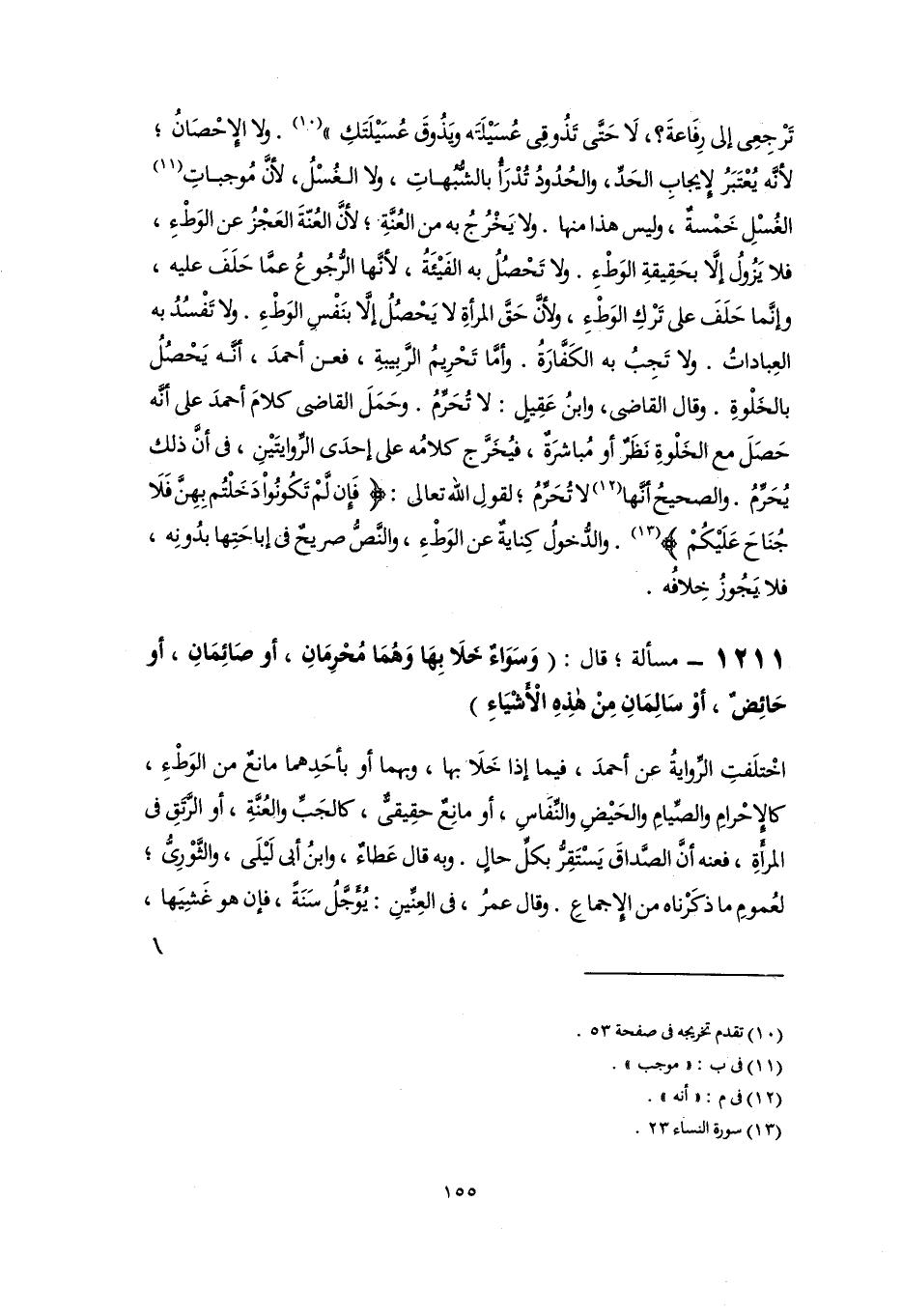 ١٢١١ - مسألة؛ قال: (وَسَوَاءٌ خلَا بِهَا وَهُمَا مُحْرِمَانِ، أَوْ صَائِمَانِ، أَوْ حَائِضٌ، أَوْ سَالِمَانِ مِنْ هذِهِ الْأَشْيَاءِ)