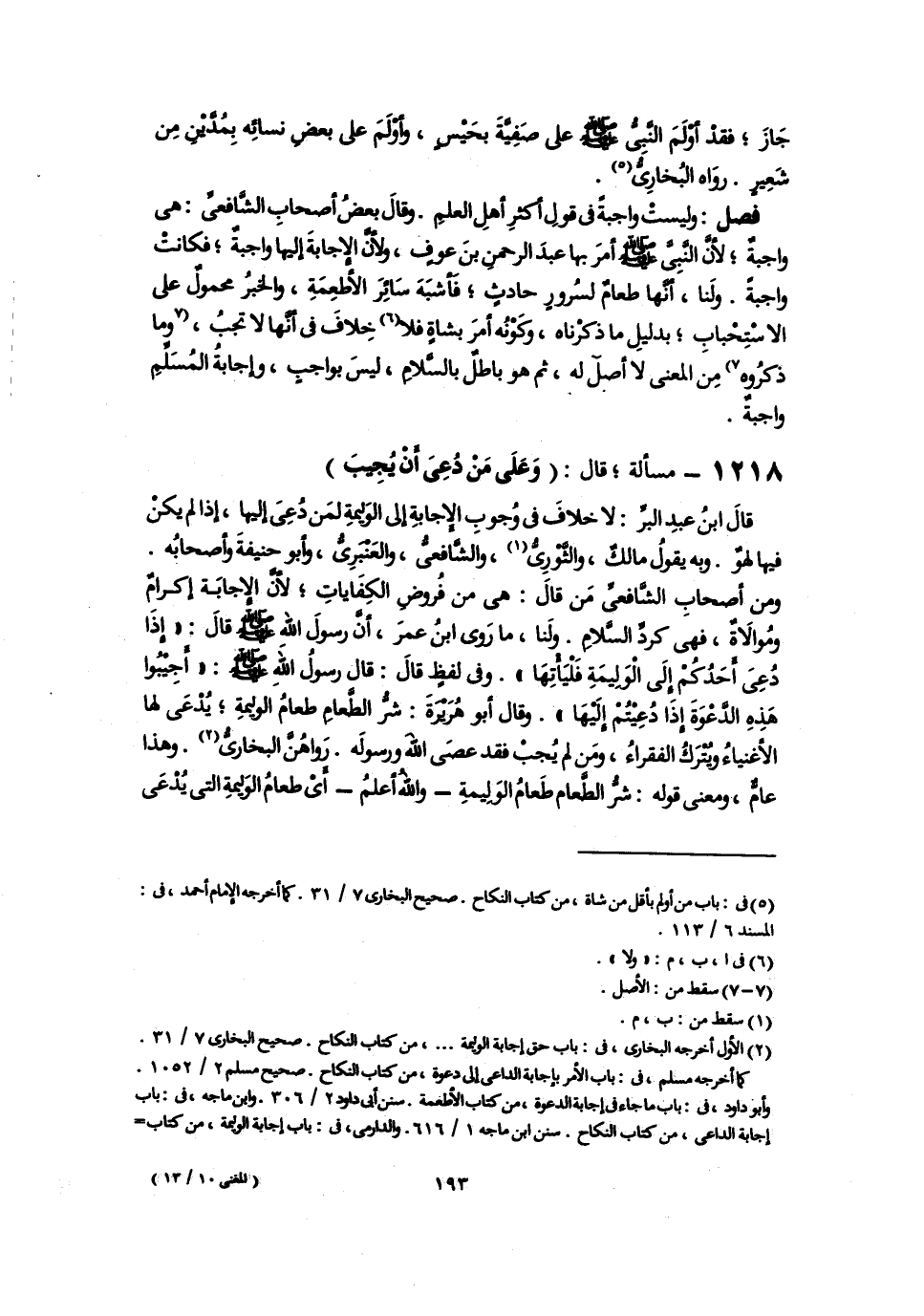١٢١٨ - مسألة؛ قال: (وَعَلَى مَنْ دُعِىَ أَنْ يُجِيبَ)