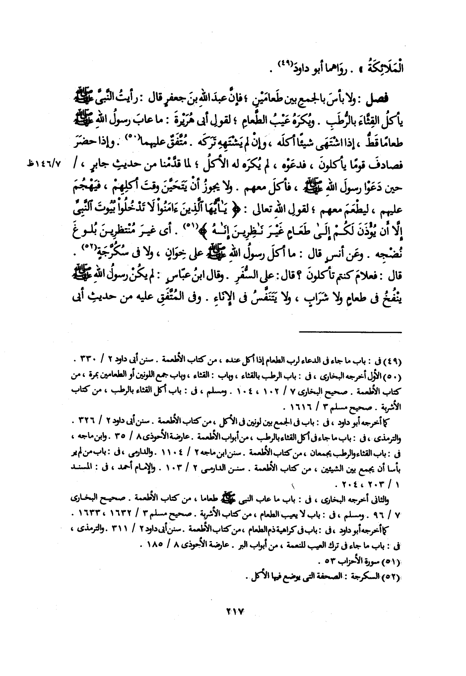 (٤٩) فى: باب ما جاء فى الدعاء لرب الطعام إذا أكل عنده، من كتاب الأطعمة. سنن أبى داود ٢/ ٣٣٠.
