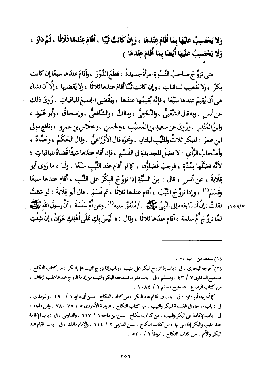 (٢) أخرجه البخارى، فى: باب إذا تزوج البكر على الثيب، وباب إذا تزوج الثيب على البكر، من كتاب النكاح. صحيح البخارى ٧/ ٤٣. ومسلم، فى: باب قدر ما تستحقه البكر والثيب من إقامة الزوج عندها عقب الزفاف، من كتاب الرضاع. صحيح مسلم ٢/ ١٠٨٤.