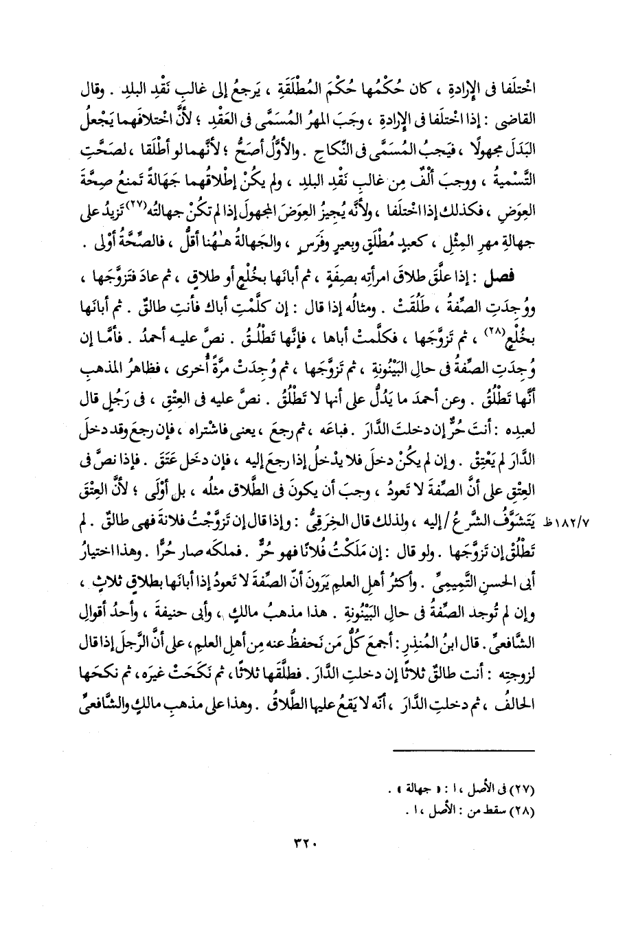 فصل: إذا علَّقَ طلاقَ امرأتِه بصِفَةٍ، ثم أبانَها بخُلْعٍ أو طلاقٍ، ثم عادَ فتَزوَّجَها، ووُجِدَتِ الصِّفةُ، طَلُقَتْ. ومثالُه إذا قال: إن كلَّمْتِ أباك فأنتِ طالقٌ. ثم أبانَها بخُلْعٍ (٢٨)، ثم تَزوَّجَها، فكلَّمتْ أباها، فإنَّها تَطْلُقُ. نصَّ عليه أحمدُ. فأمَّا إن وُجِدَتِ الصِّفةُ فى حالِ البَيْنُونةِ، ثم تَزوَّجَها، ثم وُجِدَتْ مرَّةً أخرى، فظاهرُ المذهبِ أنَّها تَطْلُقُ. وعن أحمدَ ما يَدُلُّ على أنها لا تَطْلُقُ. نصَّ عليه فى العِتْقِ، فى رَجُلٍ قال لعبدِه: أنتَ حُرٌّ إن دخلتَ الدَّارَ. فباعَه، ثم رجعَ، يعنى فاشْتراه، فإن رجعَ وقد دخلَ الدَّارَ لم يَعْتِقْ. وإن لم يكُنْ دخلَ فلا يدْخلُ إذا رجعَ إليه، فإن دخَل عَتَقَ. فإذا نصَّ فى العِتْقِ على أَنَّ الصِّفةَ لا تَعودُ، وجبَ أن يكونَ فى الطَّلاق مثلُه، بل أوْلَى؛ لأنَّ العِتْقَ يَتَشَوَّفُ الشَّرعُ إليه، ولذلك قال الخِرَقِىُّ: وإذا قال إن تَزوَّجْتُ فلانةَ فهى طالقٌ. لم تَطْلُقْ إن تَزوَّجَها. ولوقال: إن مَلَكْتُ فُلانًا فهو حُرٌّ. فملكَه صار حُرًّا. وهذا اختيارُ أبى الحسنِ التَّمِيمِىِّ. وأكثرُ أهلِ العلمِ يَرَونَ أَنَّ الصفةَ لا تَعودُ إذا أبانَها بطلاقٍ ثلاثٍ، وإن لم تُوجد الصِّفةُ فى حالِ البَيْنُونةِ. هذا مذهبُ مالكٍ، وأبى حنيفةَ، وأحدُ أقوالِ الشَّافعىِّ. قال ابنُ المُنذِرِ: أجمعَ كُلُّ مَن نَحفظُ عنه مِن أهلِ العلمِ، على أن الرَّجلَ إذا قال لزوجتِه: أنت طالقٌ ثلاثًا إن دخلتِ الدَّارَ. فطلَّقَها ثلاثًا، ثم نَكَحَتْ غيرَه، ثم نكحَها الحالفُ، ثم دخلتِ الدَّارَ، أنَّه لا يَقعُ عليها الطَّلاقُ. وهذا على مذهبِ مالكٍ والشَّافعىِّ