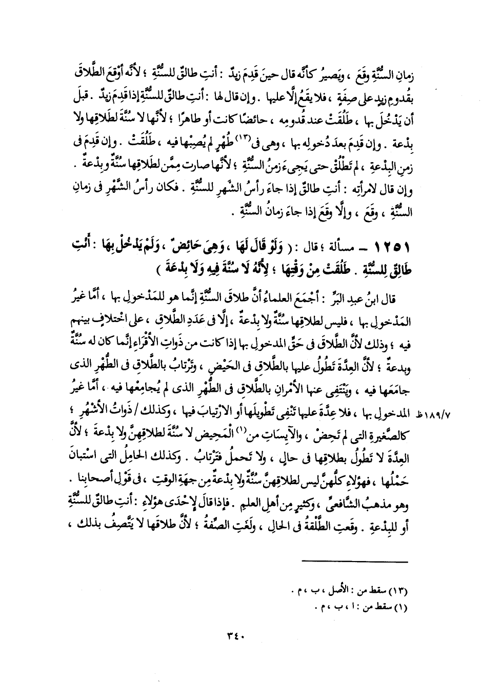 قال ابنُ عبدِ البَرِّ: أجْمَعَ العلماءُ أَنَّ طلاقَ السُّنَّةِ إنَّما هو للمَدْخولِ بها، أمَّا غيرُ المَدْخولِ بها، فليس لطلاقِها سُنَّةٌ ولا بِدْعةٌ، إلا فى عَدَدِ الطَّلاقِ، على اخْتلافٍ بينهم فيه؛ وذلك لأنَّ الطَّلاقَ فى حَقِّ المدخولِ بها إذا كانت من ذَواتِ الأقْرَاءِ إنَّما كان له سُنَّةٌ وبدعةٌ؛ لأنَّ العِدَّةَ تَطولُ عليها بالطَّلاقِ فى الحَيْضِ، وتَرْتابُ بالطَّلاقِ فى الطُّهْرِ الذى جامَعَها فيه، ويَنْتَفِى عنها الأمْرانِ بالطَّلاقِ فى الطُّهْرِ الذى لم يُجامِعْها فيه، أمَّا غيرُ المدخولِ بها، فلا عِدَّةَ عليها تَنْفِى تَطْويلَها أو الارْتيابَ فيها، وكذلك ذَواتُ الأشْهُرِ؛ كالصَّغيرةِ التى لم تَحِضْ، والآيِسَاتِ من (١) الْمَحِيض لا سُنَّةَ لطلاقِهِنَّ ولا بِدْعةَ؛ لأنَّ العِدَّةَ لا تَطُولُ بطلاقِها فى حالٍ، ولا تَحملُ فتَرْتابُ. وكذلك الحامِلُ التى اسْتبانَ حَمْلُها، فهؤلاء كلُّهنَّ ليس لطلاقِهنَّ سُنَّةٌ ولا بِدْعةٌ مِن جهَةِ الوقتِ، فى قَوْلِ أصحابِنا. وهو مذهبُ الشَّافعىِّ، كثير مِن أهلِ العلمِ. فإذا قالَ لإحْدَى هؤلاءِ: أنتِ طالقٌ للسُّنَّةِ أو للبِدْعةِ. وقَعتِ الطَّلْقةُ فى الحالِ، ولَغَتِ الصِّفةُ؛ لأنَّ طلاقَها لا يَتَّصِفُ بذلك،