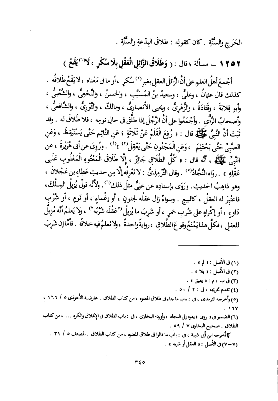 (٥) وأخرجه الترمذى، فى: باب ما جاء فى طلاق المعتوه، من كتاب الطلاق. عارضة الأحوذى ٥/ ١٦٦، ١٦٧.