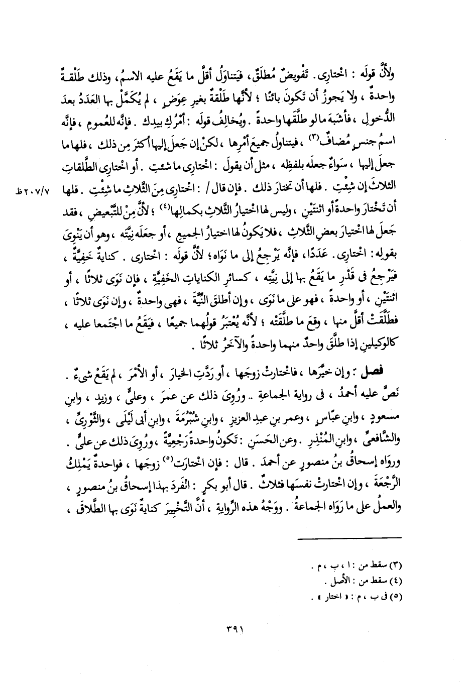 فصل: وإن خيَّرَها، فاخْتارتْ زوجَها، أو رَدَّتِ الخيارَ، أو الأمْرَ، لم يَقَعْ شىءٌ. نَصَّ عليه أحمدُ، فى رواية الجماعةِ. ورُوِىَ ذلك عن عمرَ، وعلىٍّ، وزيدٍ، وابنِ مسعودٍ، وابنِ عبّاسٍ، وعمر بنِ عبدِ العزيزِ، وابنِ شُبْرُمَةَ، وابنِ أبى لَيْلَى، والثَّوْرِىِّ، والشَّافعىِّ، وابنِ المُنْذِرِ. وعن الحَسَنِ: تَكونُ واحدةً رَجْعِيَّةً، ورُوِىَ ذلك عن علىٍّ. وروَاه إسحاقُ بنُ منصورٍ عن أحمدَ. قال: فإن اخْتارَت (٥) زوجَها، فواحدةٌ يَمْلِكُ الرَّجْعَةَ، وإن اخْتارتْ نفسَها فثلاثٌ. قال أبو بكرٍ: انْفَردَ بهذا إسحاقُ بنُ منصورٍ، والعملُ على ما رَوَاه الجماعةُ. ووَجْهُ هذه الرِّوايةِ، أَنَّ التَّخْيِيرَ كنايةٌ نَوَى بها الطَّلاقَ،