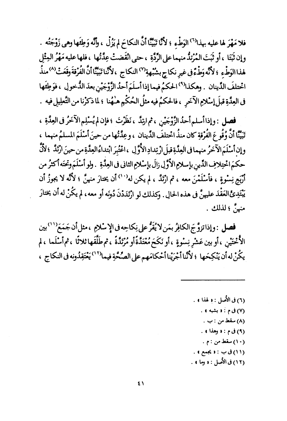 فلا مَهْرَ لها عليه بهذا (٦) الوَطْءِ؛ لأَنَّا تَبَيَّنَّا أَنَّ النِّكاحَ لم يَزُلْ، وأنَّه وَطِئَها وهى زَوْجَتُه. وإن ثَبَتَا، أو ثَبَتَ المُرْتَدُّ منهما على الرِّدَّةِ، حتَّى انْقَضتْ عِدَّتُها، فلها عليه مَهْرُ المِثْلِ لهذا الوَطْءِ؛ لأنَّه وَطْءٌ فى غيرِ نكاحٍ بشُبْهةِ (٧) النِّكاحِ، لأَنَّنَا تَبَيَّنَّا أَنَّ الفُرْقةَ وَقَعَتْ (٨) منذُ اخْتلفَ الدِّينان. وهكذا (٩) الحكمُ فيما إذا أسلَمَ أحدُ الزَّوْجَيْنِ بعدَ الدُّخولِ، فوَطِئَها فى العِدَّةِ قبلَ إسْلامِ الآخَرِ، فالحكمُ فيه مثلُ الحُكْمِ ههُنا؛ لما ذكرنا من التَّعلِيلِ فيه.