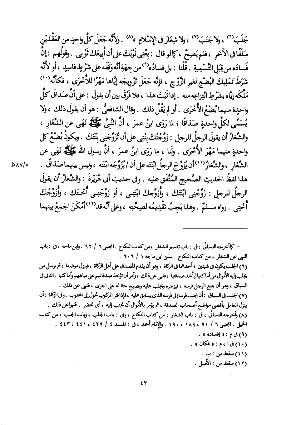 = كما أخرجه النسائى، فى: باب تفسير الشغار، من كتاب النكاح. المجتبى ٦/ ٩٢. وابن ماجه، فى: باب النهى عن الشغار، من كتاب النكاح. سنن ابن ماجه ١/ ٦٠٦.